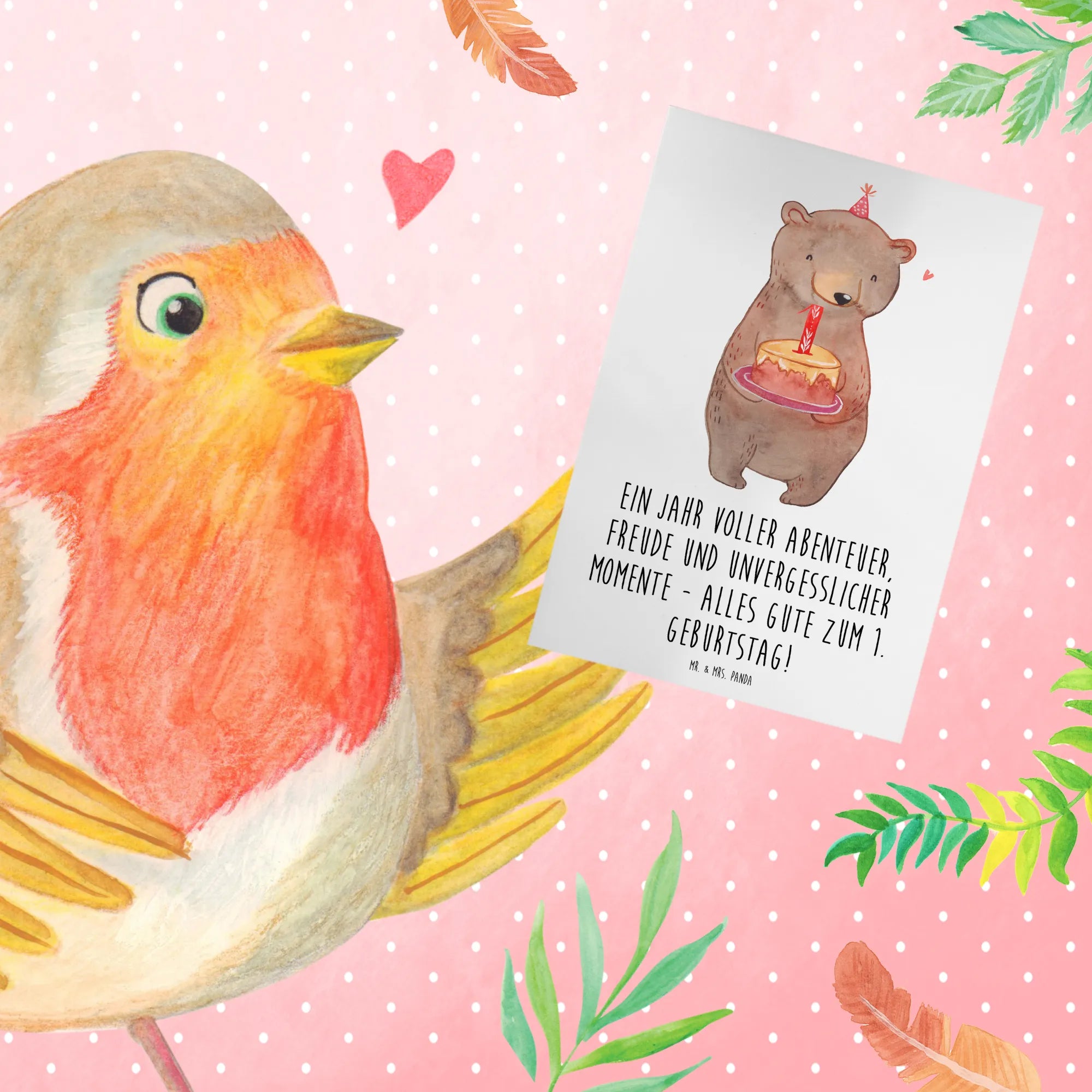 Ganz gleich, ob du die Karte zu einer Feier, als Geburtstagsgeschenk oder einfach nur so verschenkst – sie wird ein Lächeln auf die Gesichter zaubern! Lass diese Grußkarte Teil eines ganz besonderen Erlebnisses werden und feiere den ersten Geburtstag ganz groß mit Mr. & Mrs. Panda.