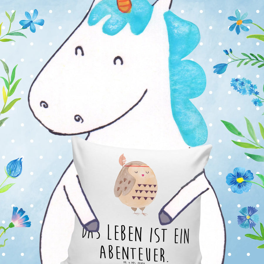 Das 40x40 Kissen mit dem zauberhaften Motiv der Eule Federschmuck von Mr. & Mrs. Panda ist das perfekte Geschenk für alle Eulen-Liebhaber und Naturfreunde!