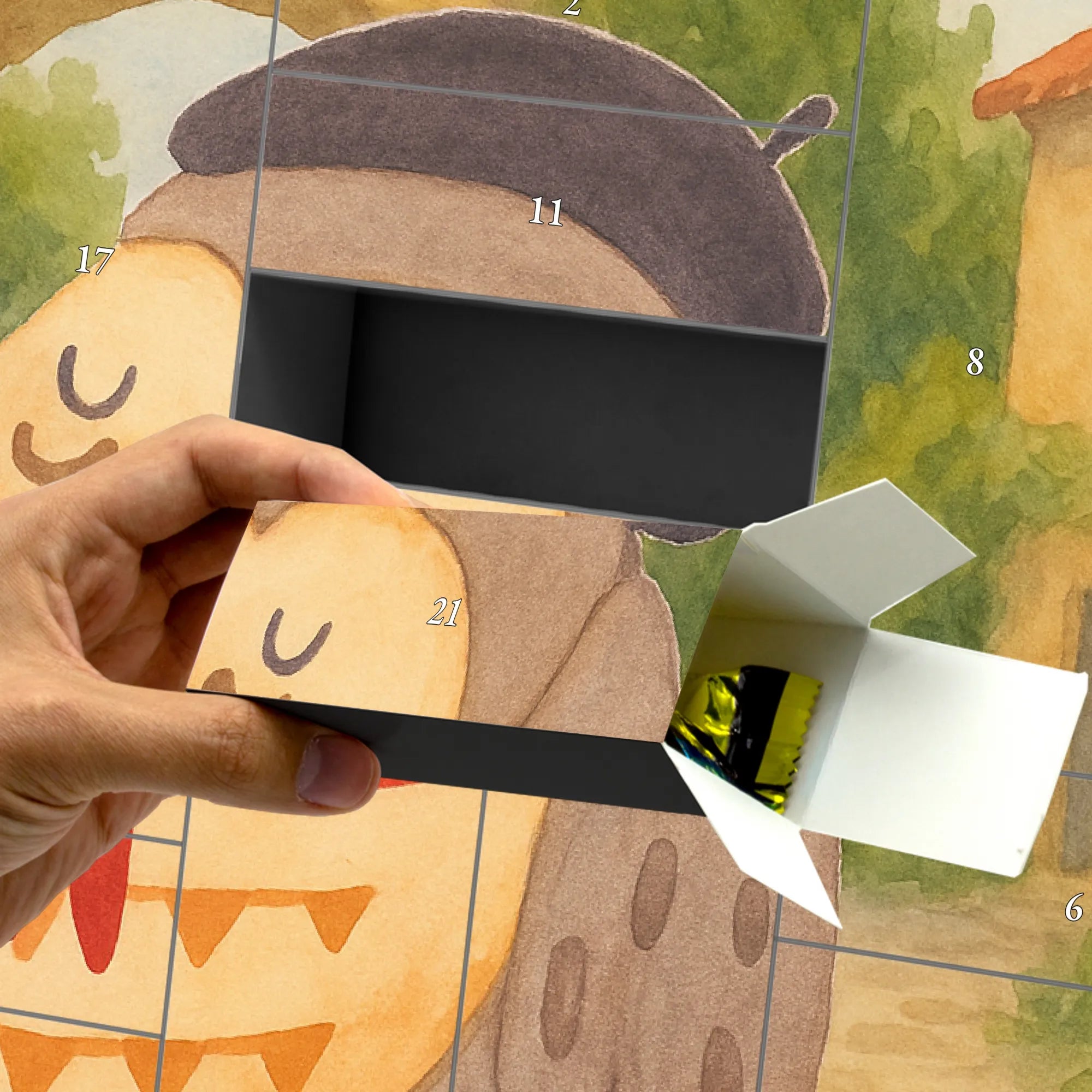 🐼 Adventskalender mit auffälliger Zeichnung und seidenmatter Oberfläche.