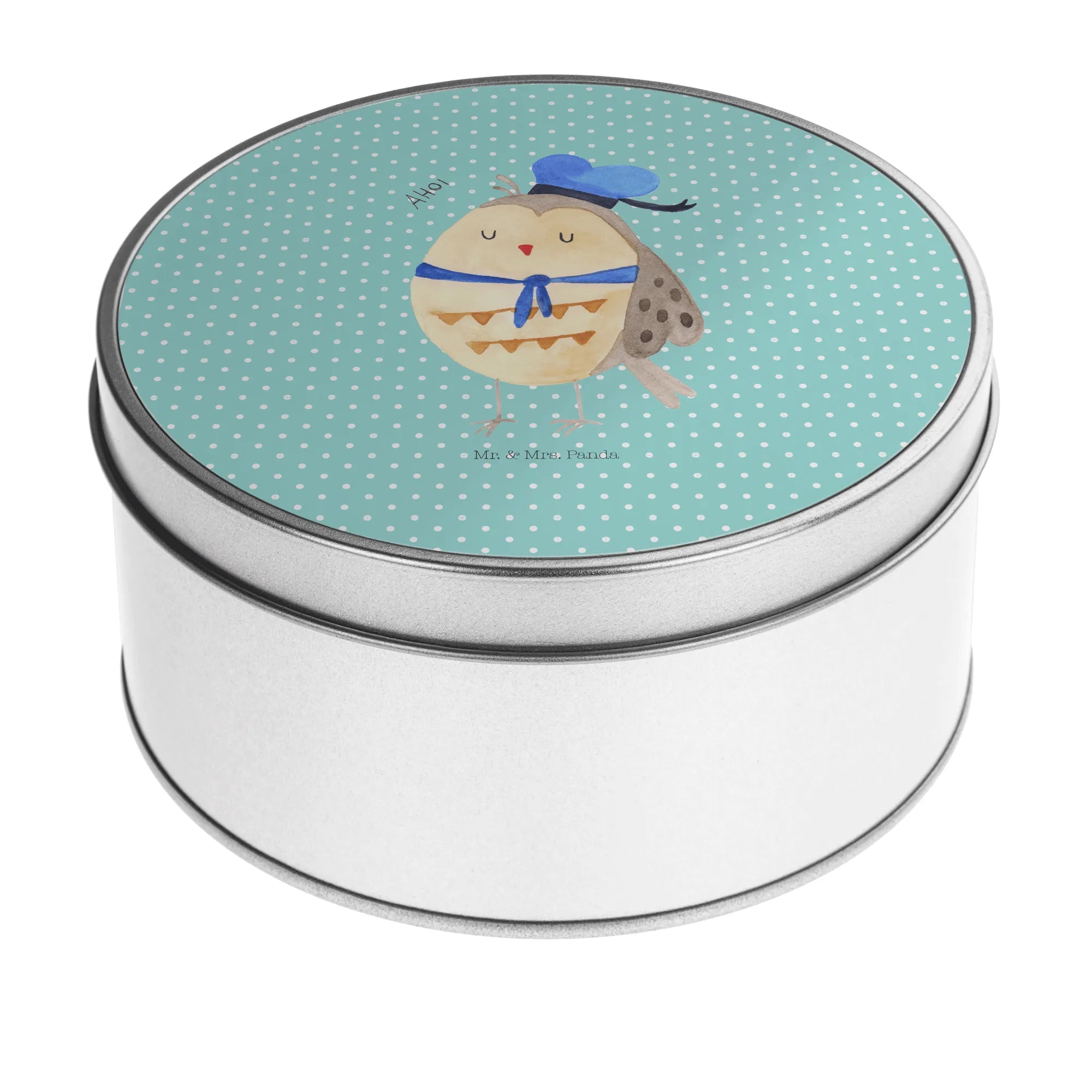 Entdecke die zauberhafte runde Blechdose Eule Matrosen von Mr. & Mrs. Panda! Diese wunderschöne Dose ist mehr als nur eine Aufbewahrungslösung – sie ist ein liebevolles Geschenk, das Herzen höher schlagen lässt.