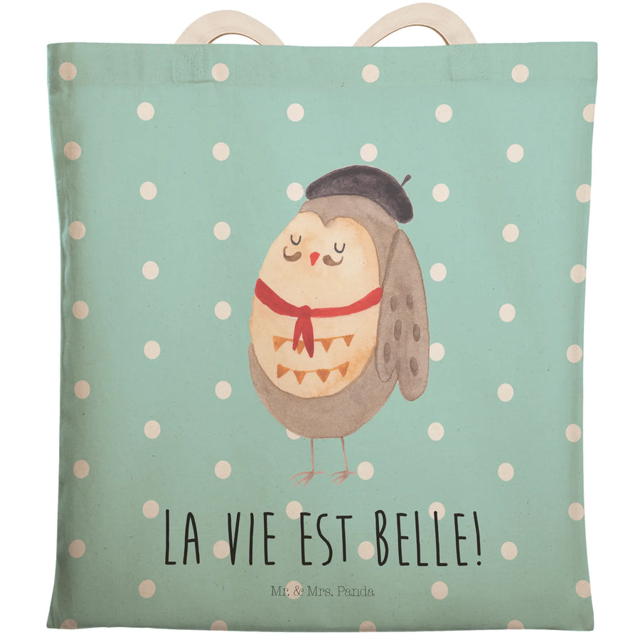 Entdecke die wunderbare Einkaufstasche Eule Französisch von Mr. & Mrs. Panda! Diese Trotz bietet ein liebevolles Design mit einer tollen Eule, die im charmanten französischen Look erscheint. Mit ihrem Hut, der Fliege und dem Schnurrbart bringt sie den französischen Flair direkt in deinen Alltag. Die Worte "La vie est belle!" dekorieren diese Tasche und erinnern dich daran, wie schön das Leben ist.