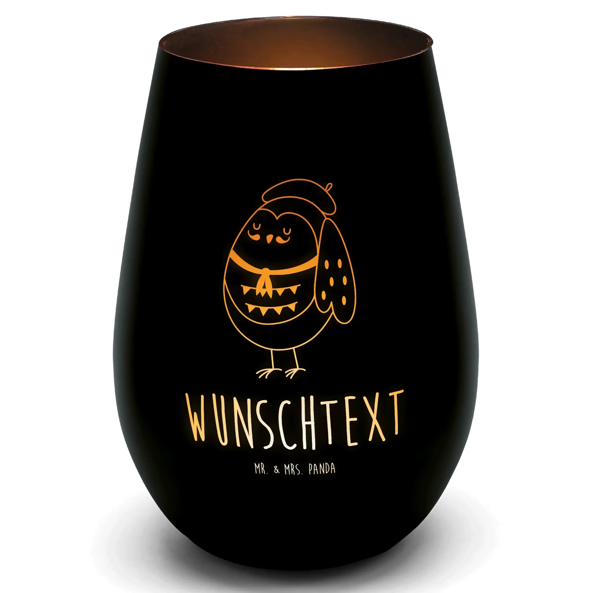 Gold Windlicht Personalisiert Eule Frankreich - Schwarz