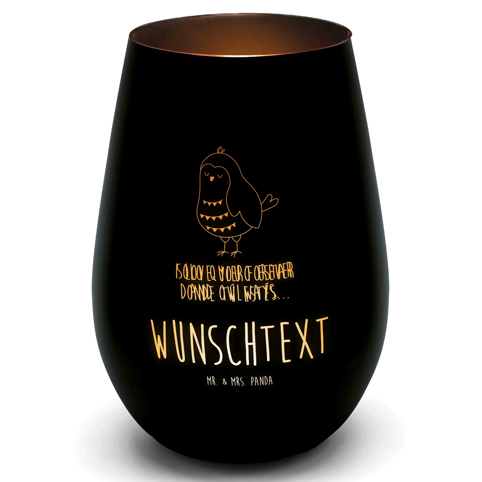 Gold Windlicht Personalisiert Eule Zufrieden - Schwarz