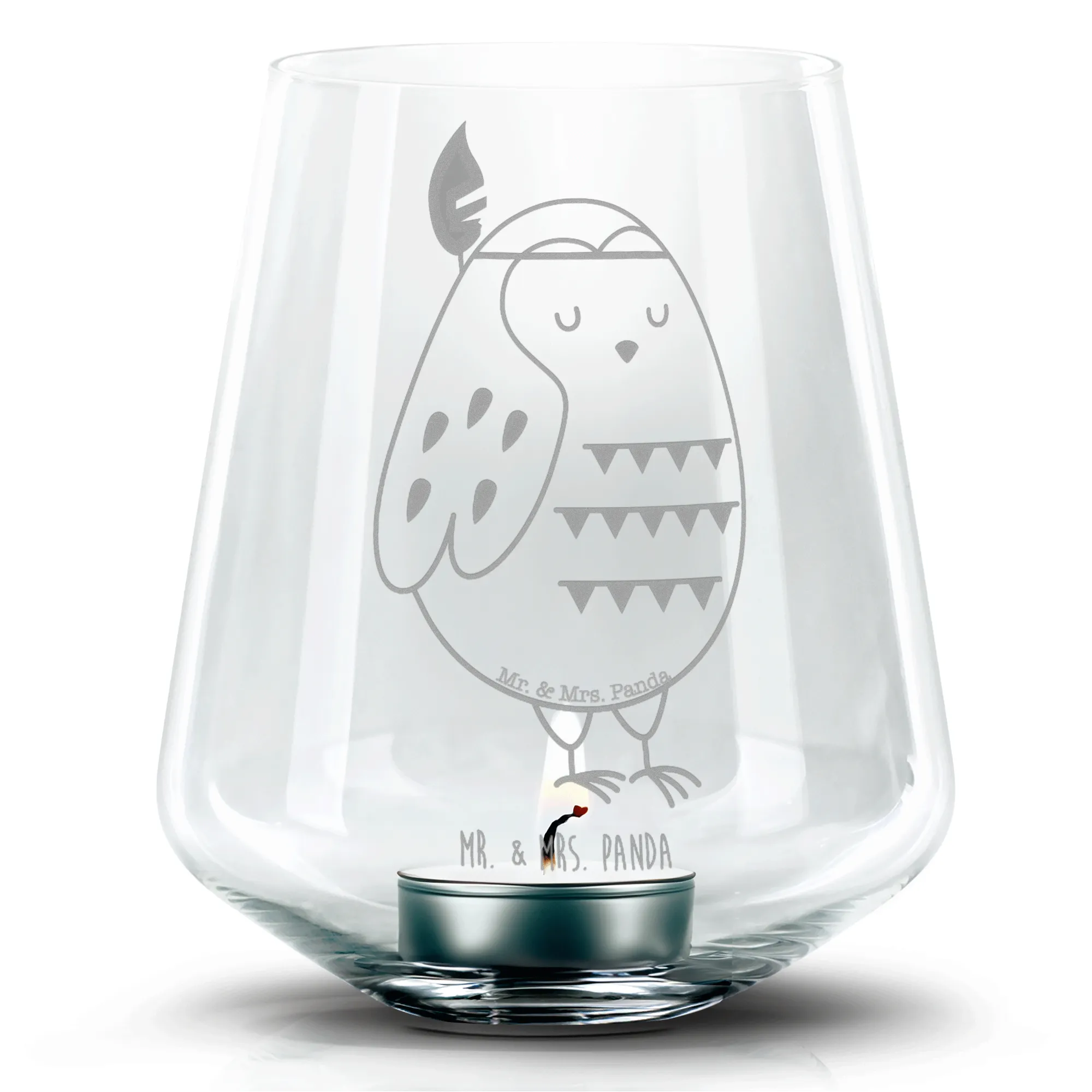Gravur Windlicht Eule Federschmuck – Mr. & Mrs. Panda