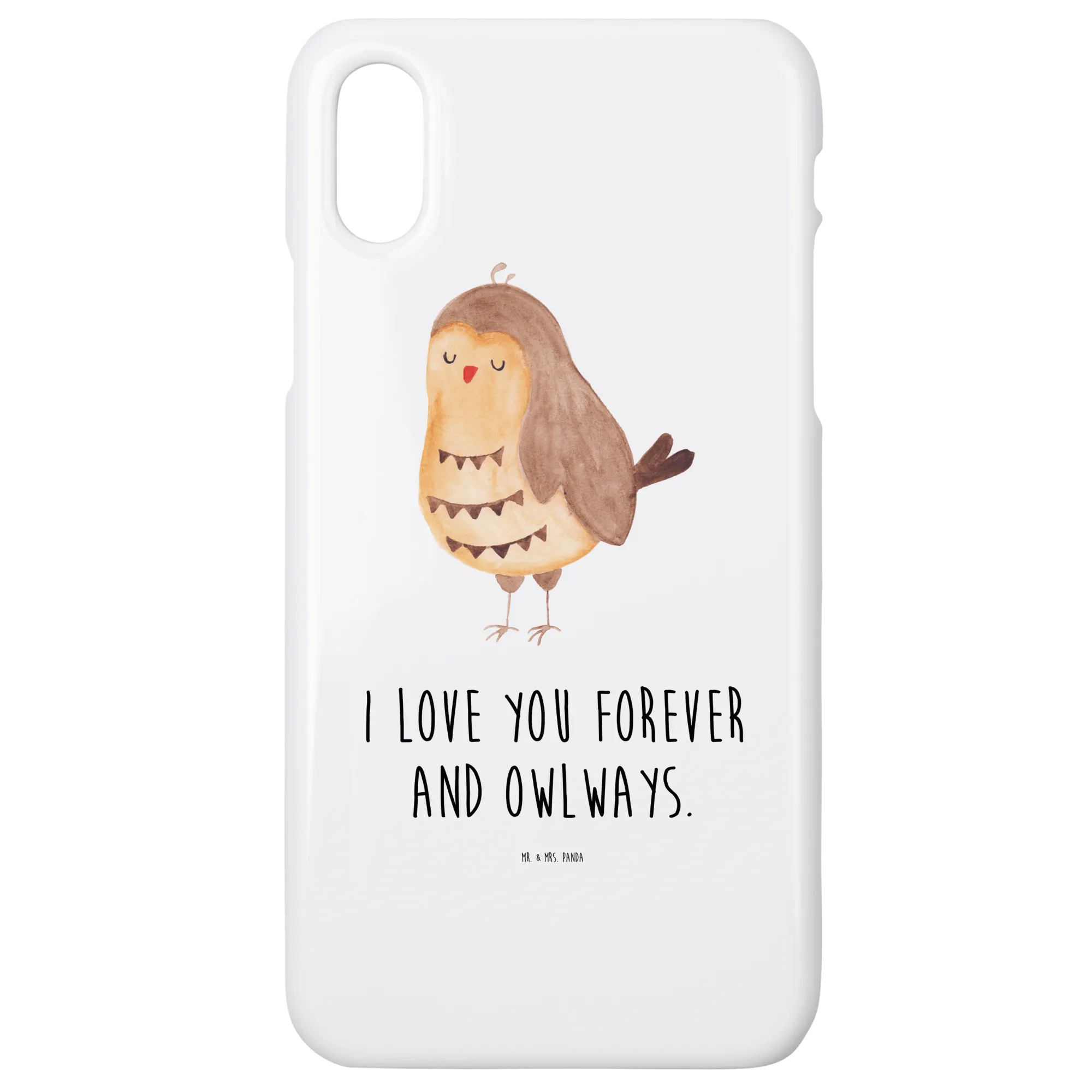 Handyhülle Eule Zufrieden - Iphone 10 Handyhülle - mit Spruch - Weiß