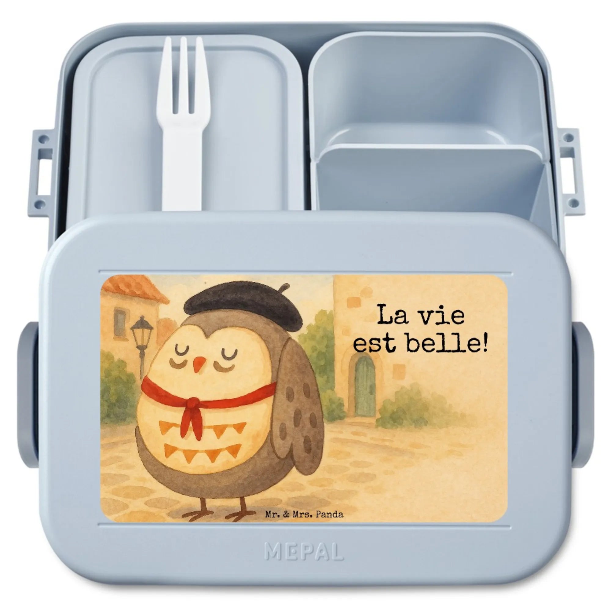 MEPAL Bentobox Eule Frankreich Design - mit Spruch - Blau Pastell