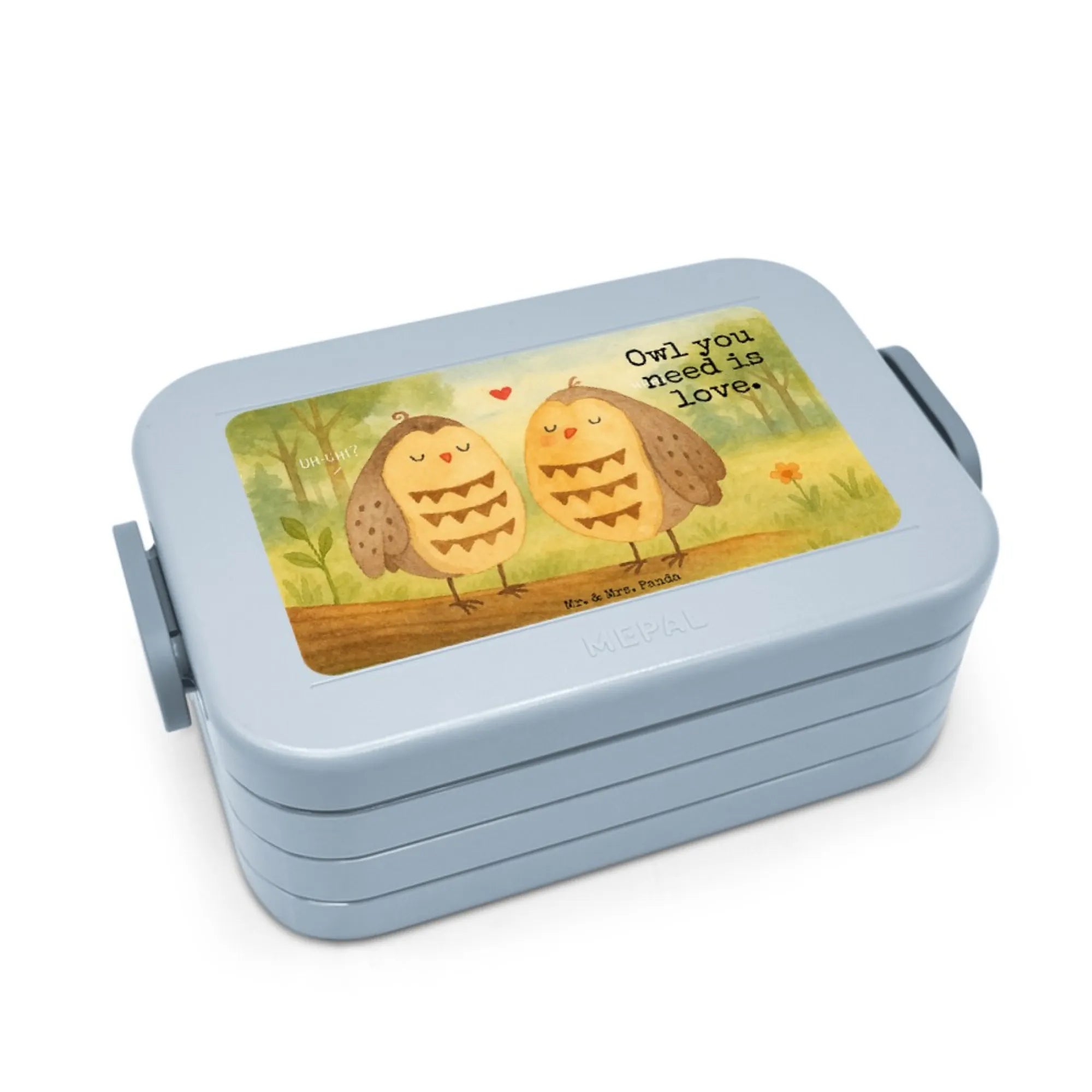 MEPAL Bentobox Eulen Liebe Design - mit Spruch - Blau Pastell