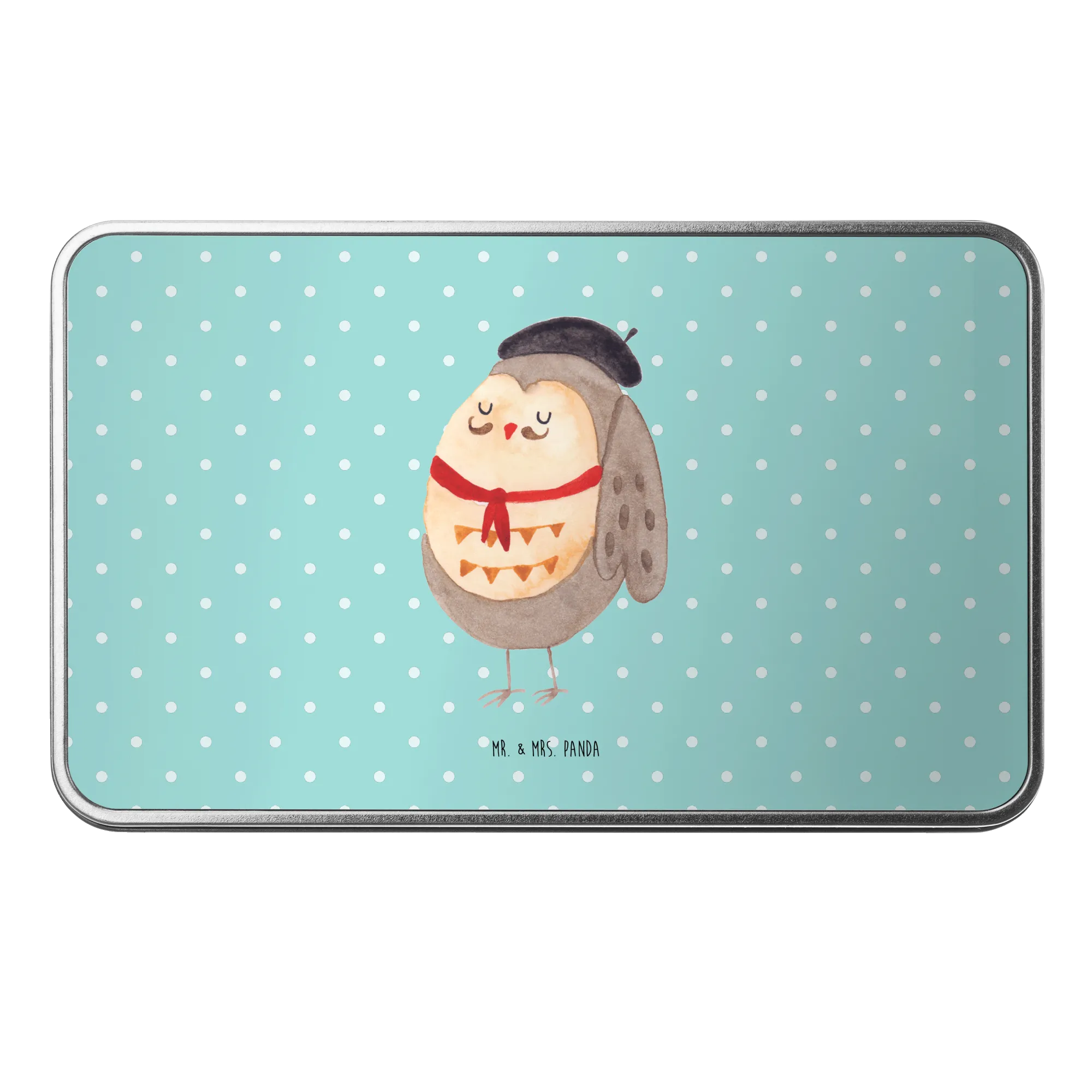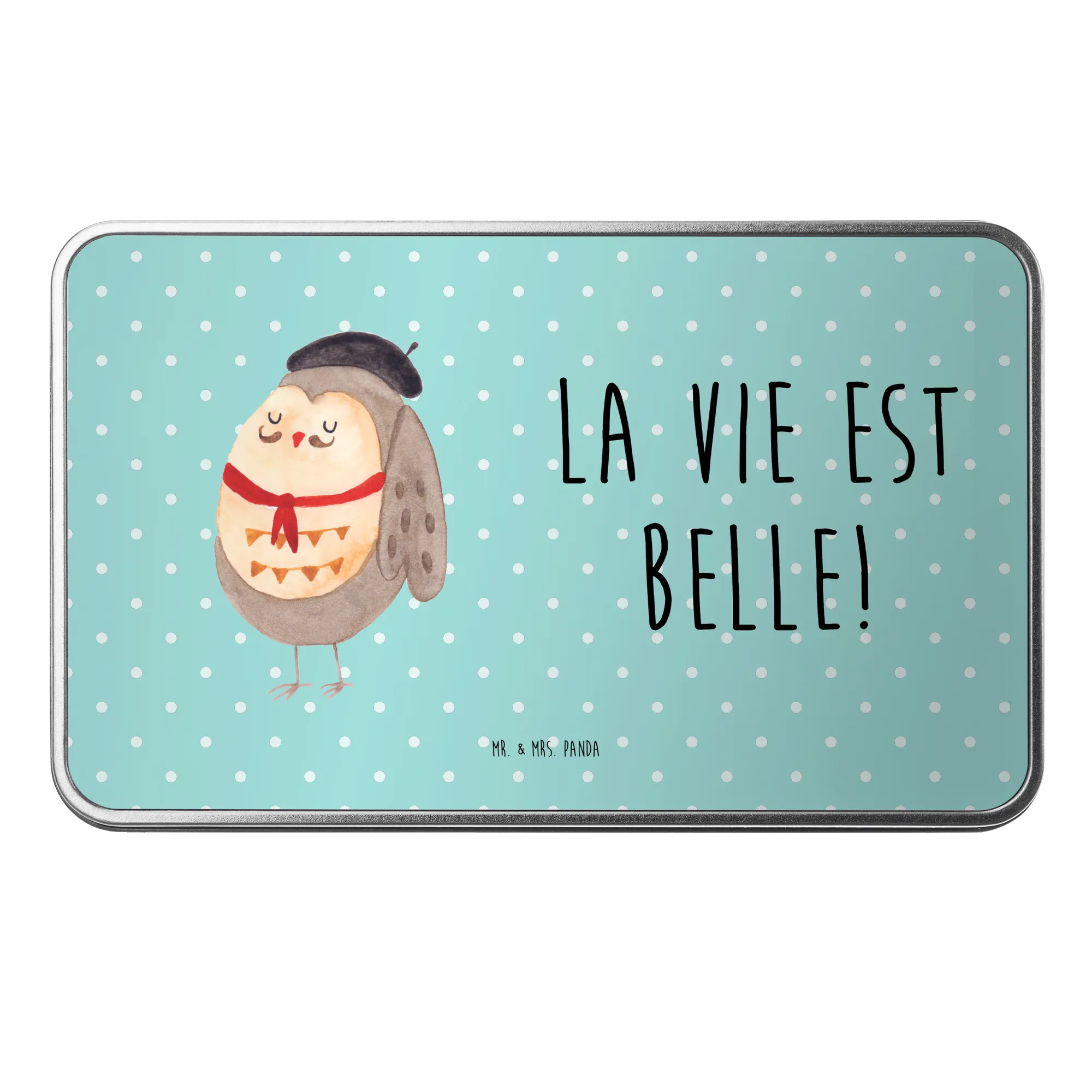 Die wunderschöne Metalldose rechteckig von Mr. & Mrs. Panda ist der perfekte Begleiter für alle Eulen-Liebhaber! Mit dem niedlichen Motiv der französischen Eule, die mit Hut, Fliege und Schnurrbart daherkommt, bringst du einen Hauch von Frankreich in dein Zuhause oder dein Büro.