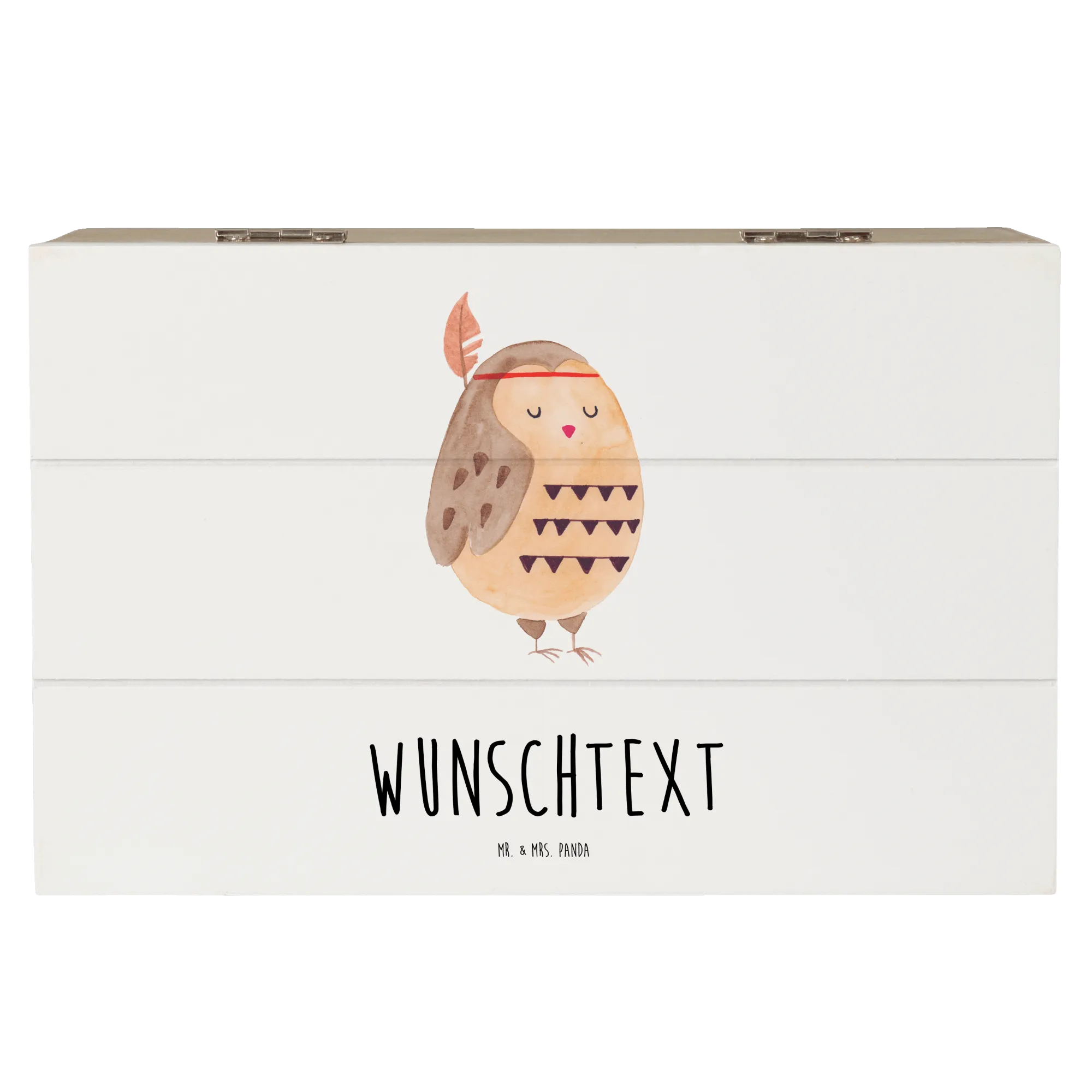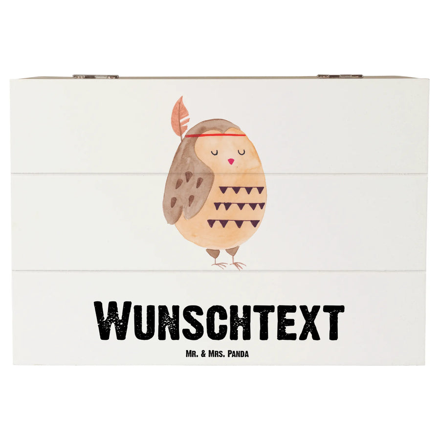 Personalisierte Holzkiste Eule Federschmuck - 22 x 15 cm - Weiß