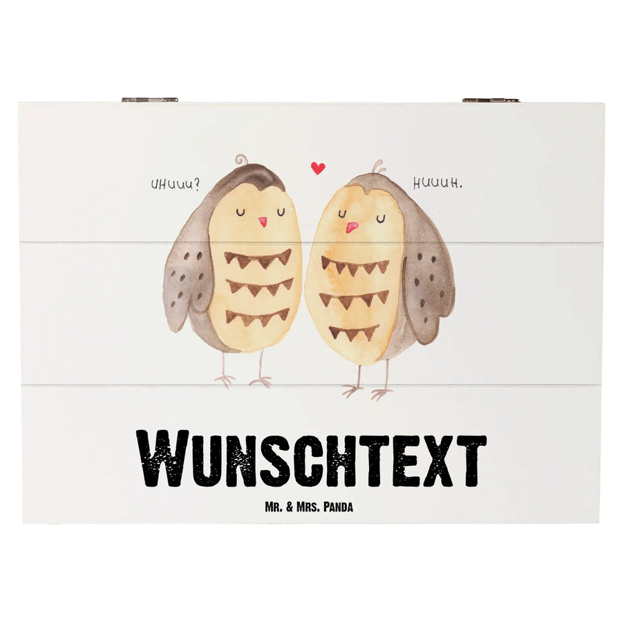 Die personalisierte Holzkiste "Eule Liebe" von Mr. & Mrs. Panda ist das perfekte Geschenk für jeden Anlass! Mit einem wunderschönen Motiv von zwei verliebten Eulen, die auf einem Ast sitzen, bringst du nicht nur Freude, sondern auch eine persönliche Note in jedes Geschenk.