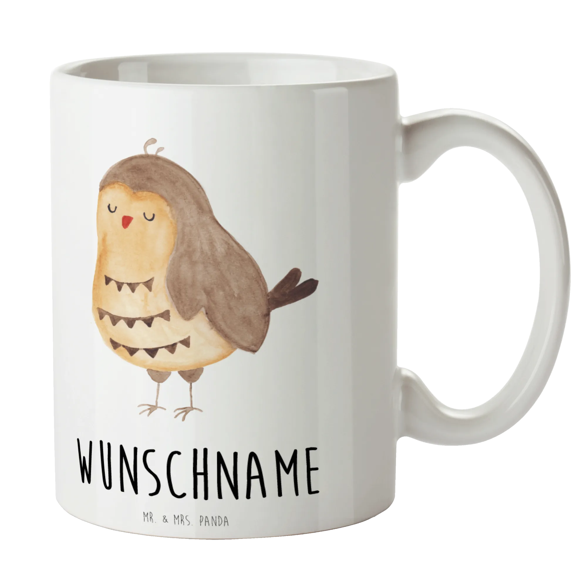 Personalisierte Tasse Eule Zufrieden – Mr. & Mrs. Panda