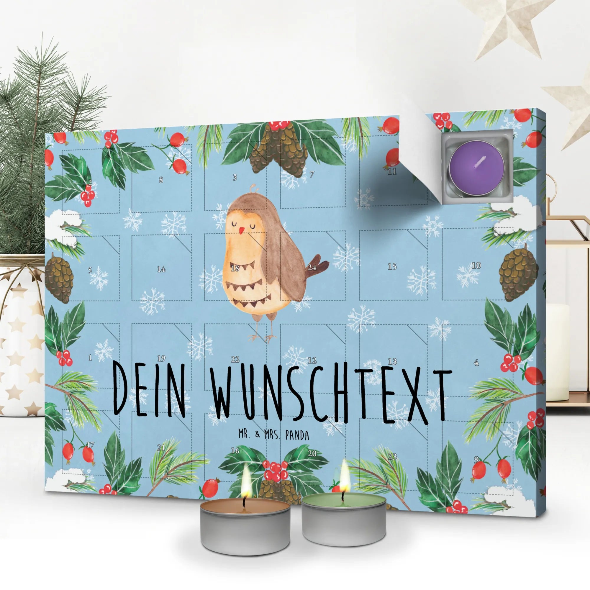 Personalisierter Duftkerzen Adventskalender Eule Zufrieden - Eisblau