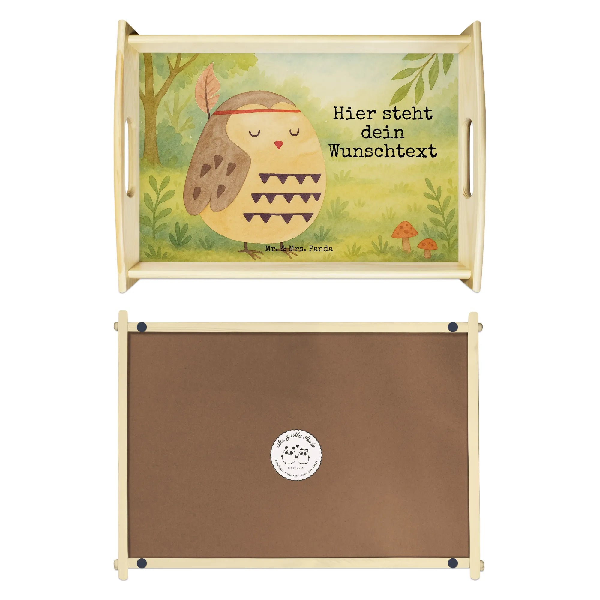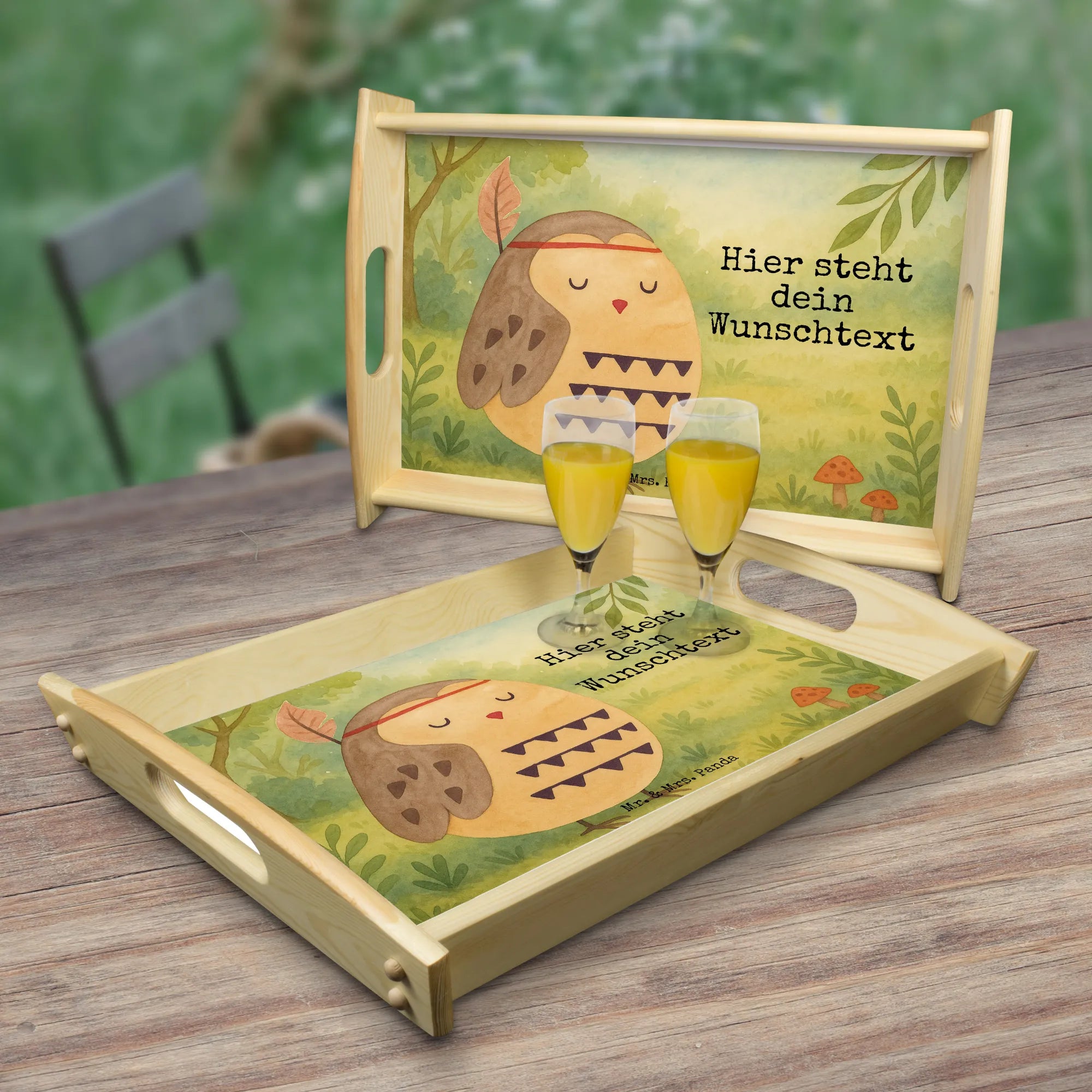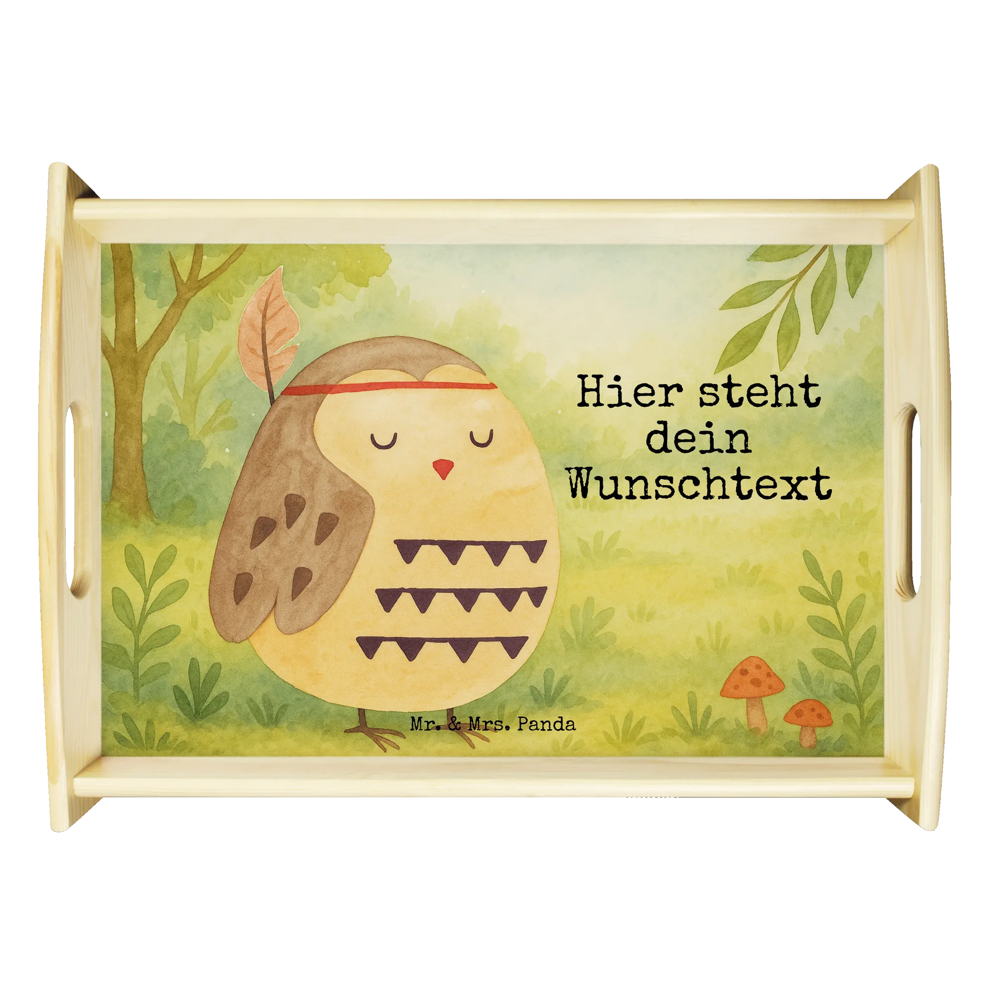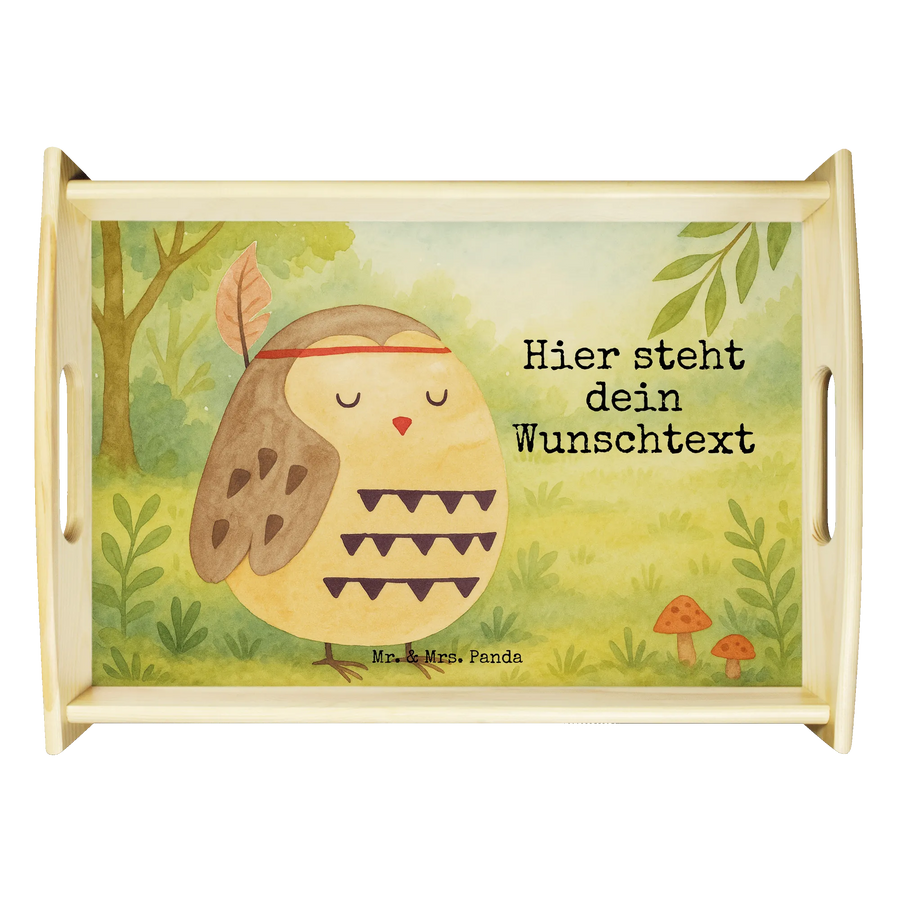 Personalisiertes Serviertablett Eule Federschmuck Design
