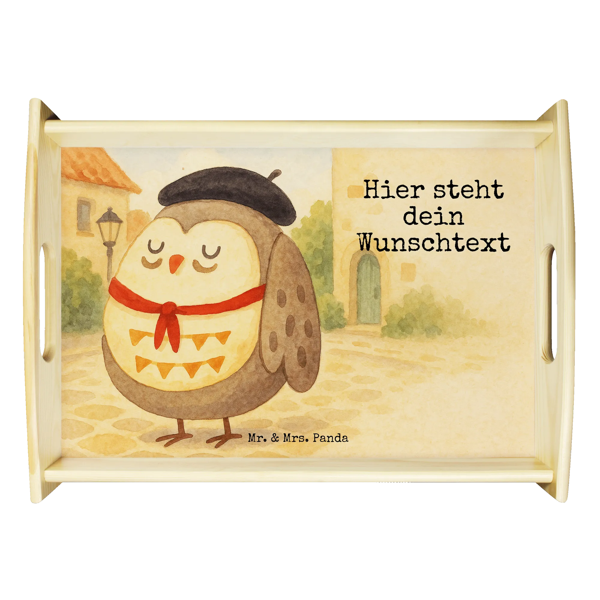 Personalisiertes Serviertablett Eule Frankreich Design