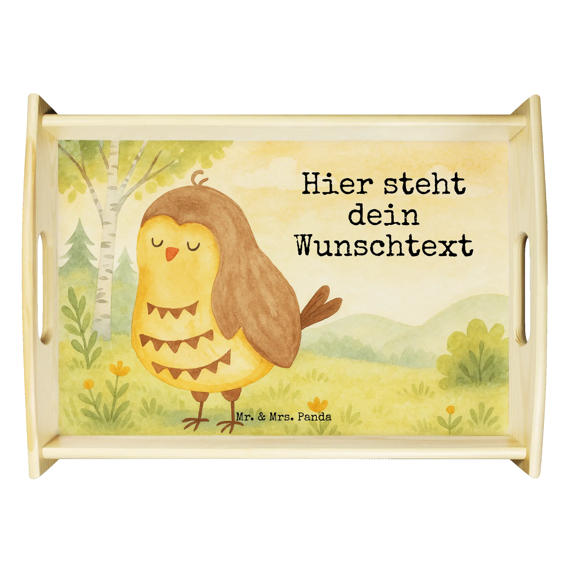 Personalisiertes Serviertablett Eule Zufrieden Design
