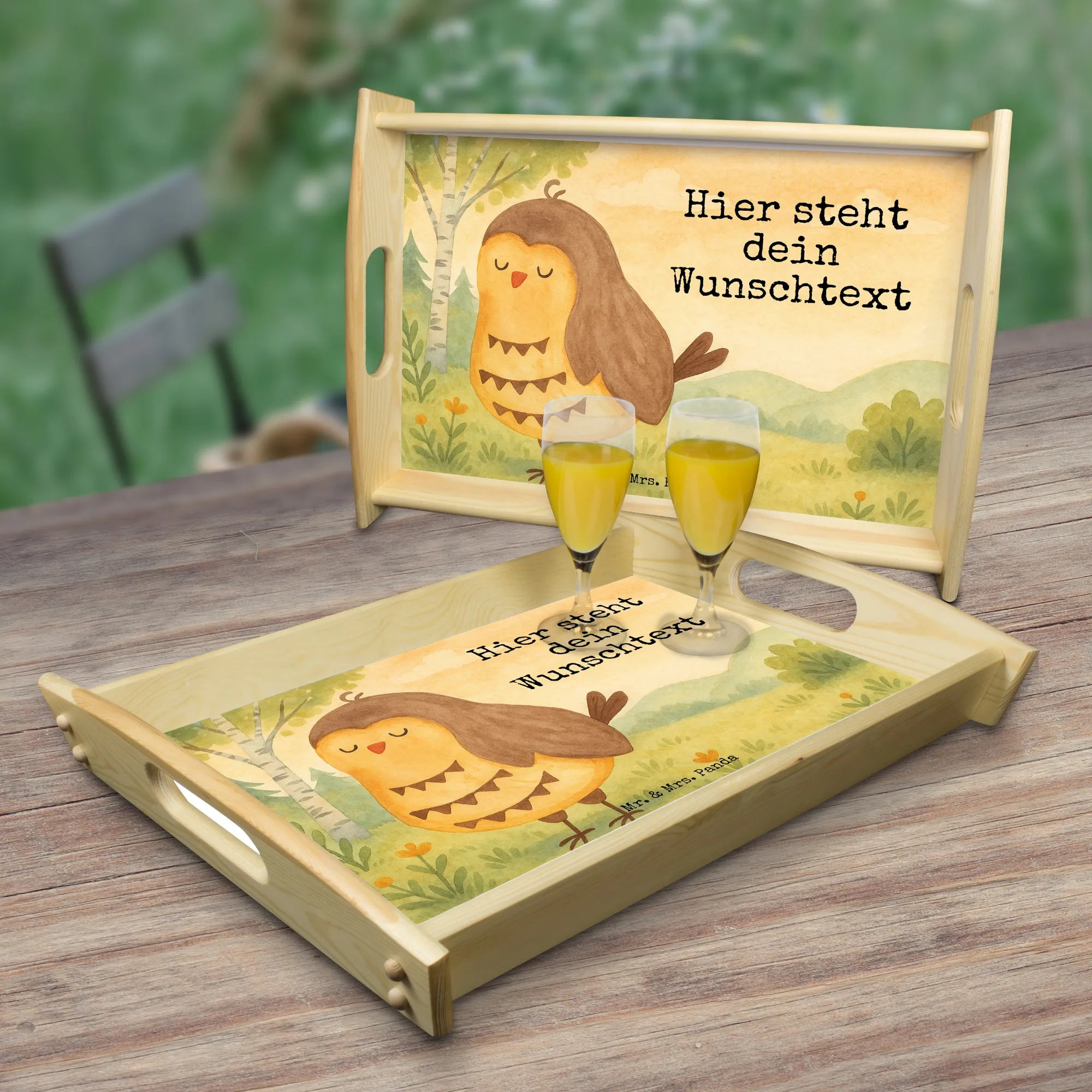 Personalisiertes Serviertablett Eule Zufrieden Design – Mr. & Mrs. Panda