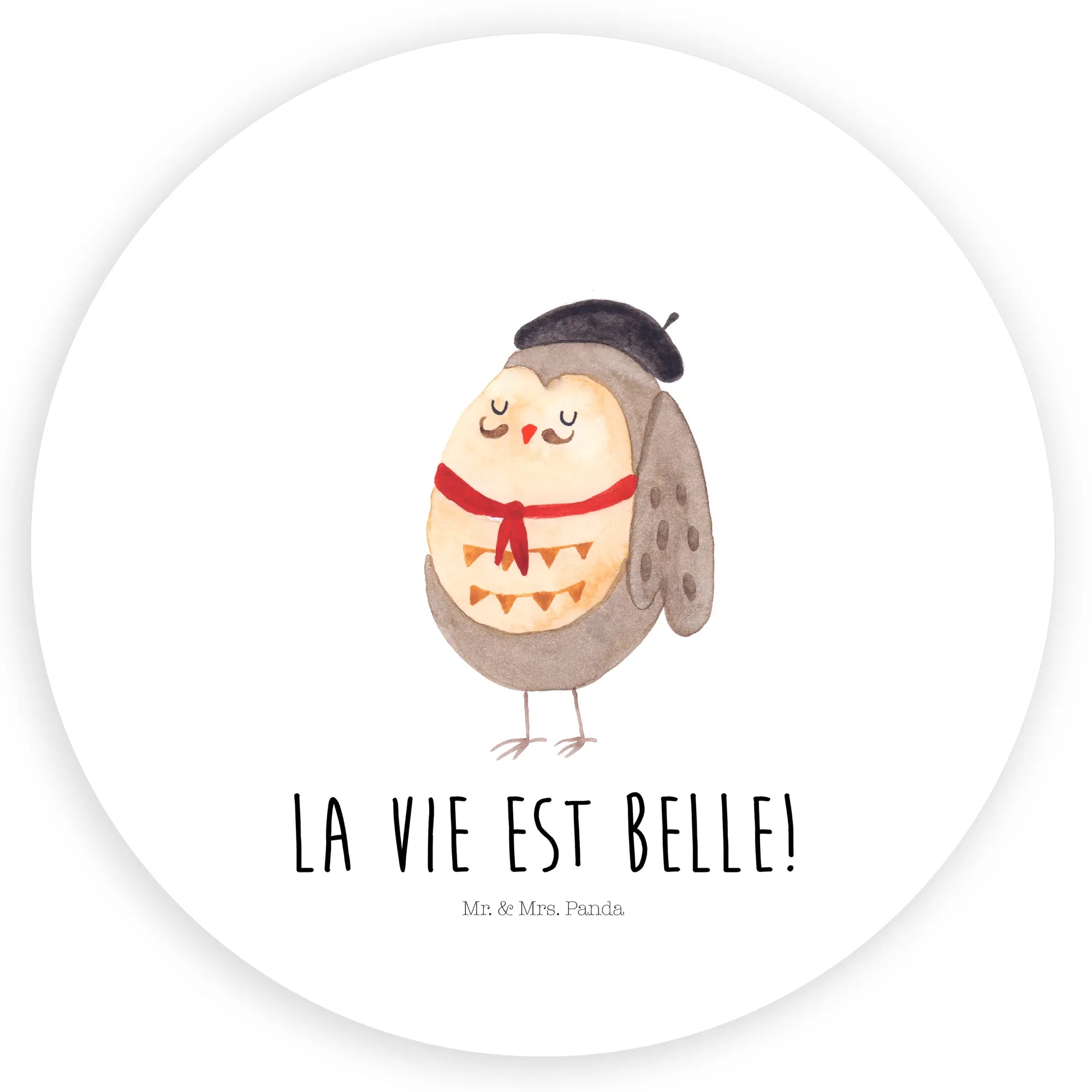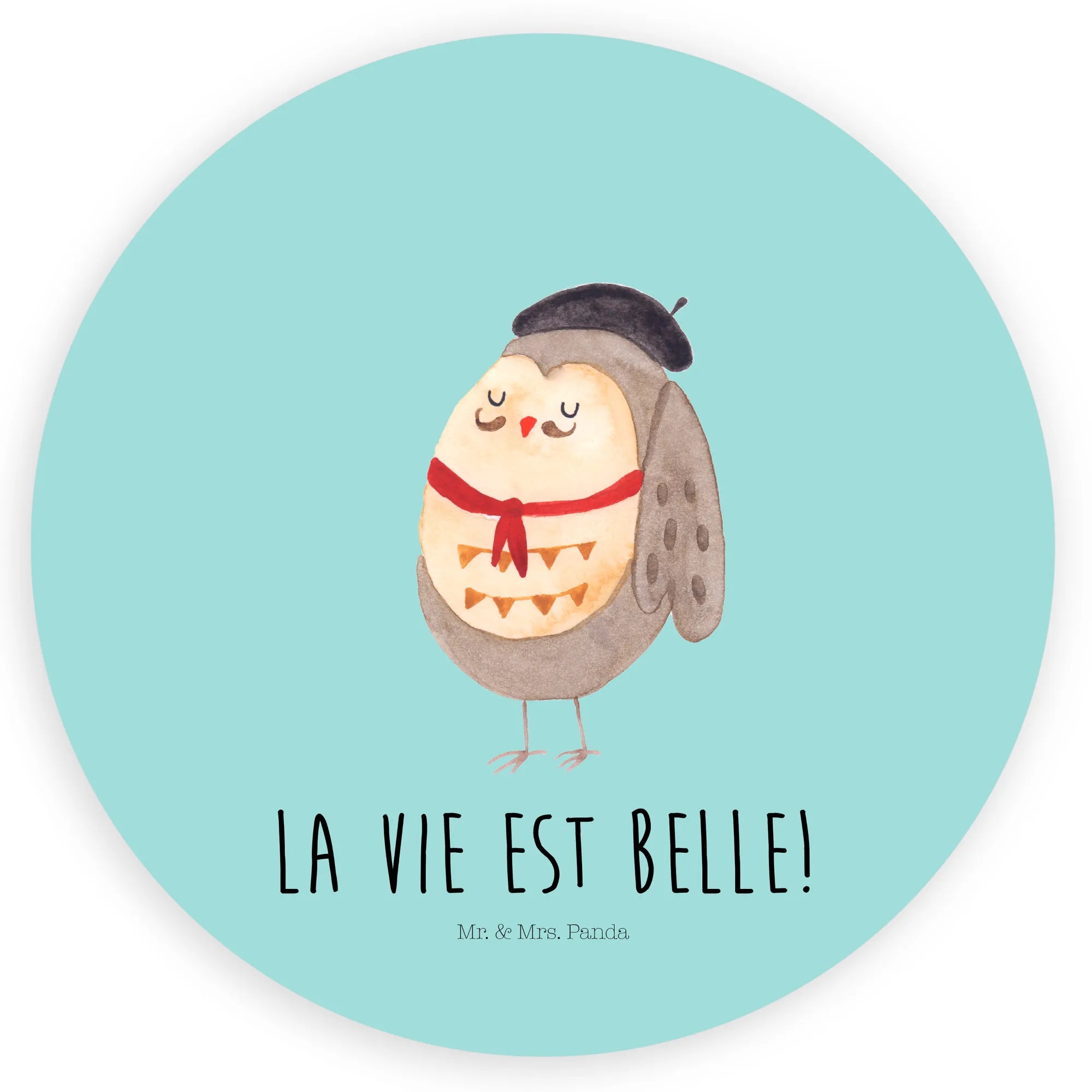 Entdecke die zauberhaften 80mm Rund Aufkleber mit dem wunderschönen Motiv Eule Französisch von Mr. & Mrs. Panda!