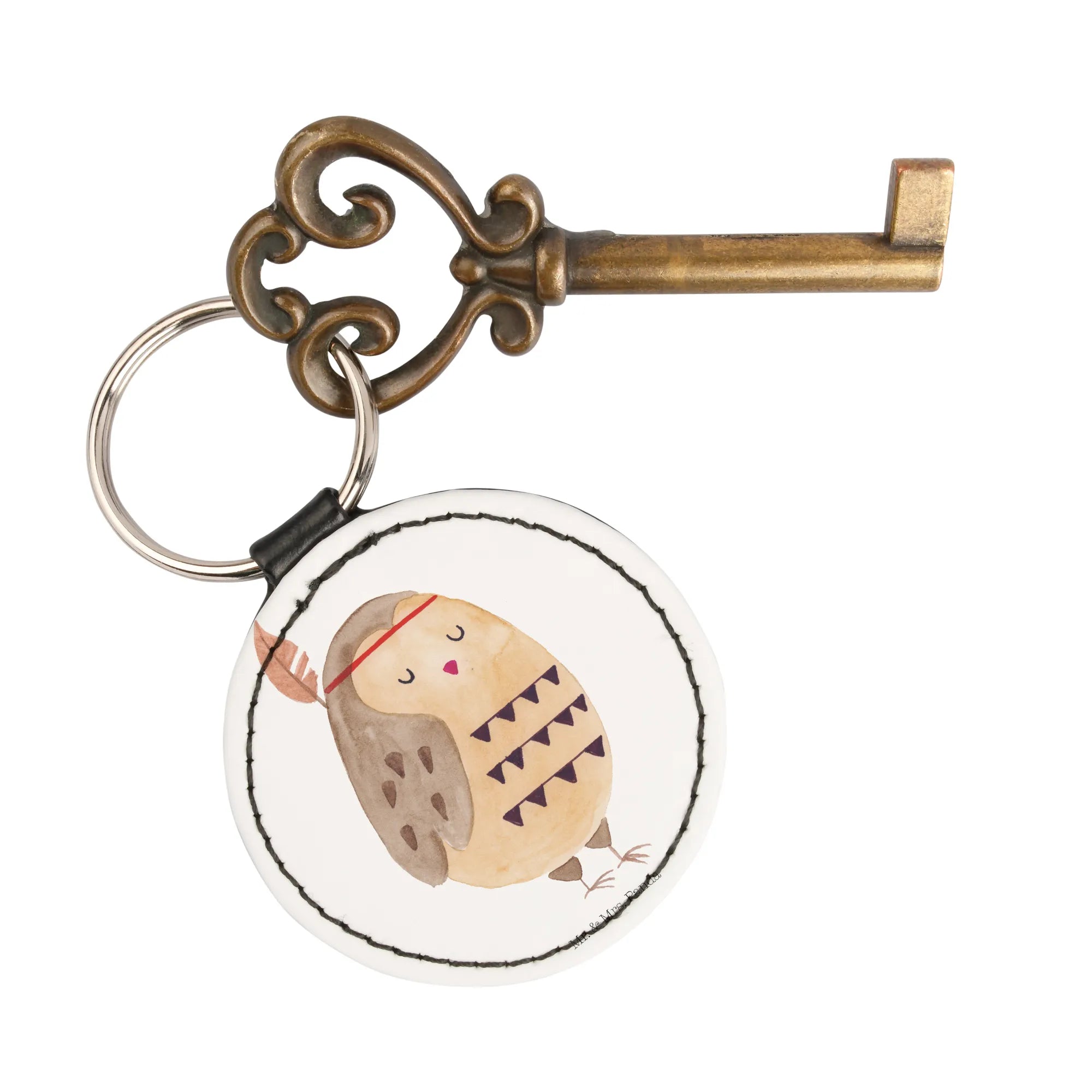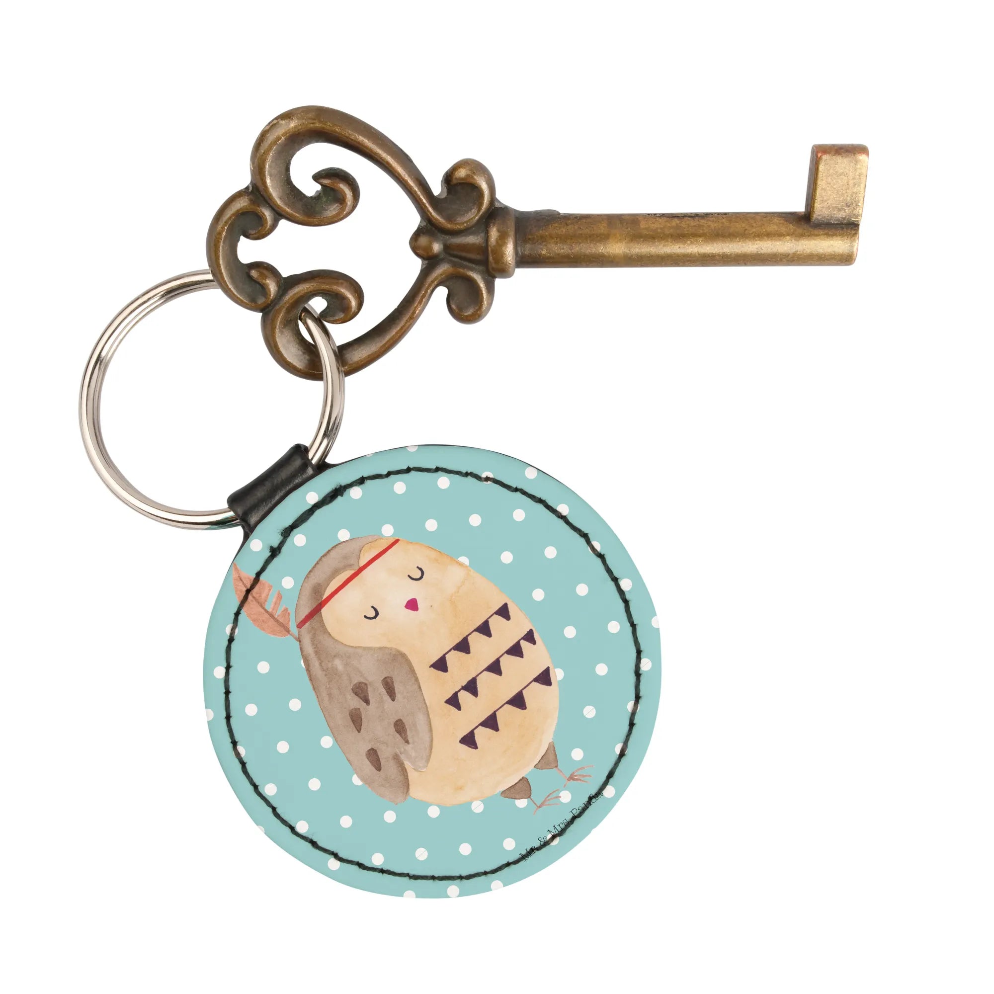 Rund Schlüsselanhänger Eule Federschmuck - Türkis Pastell