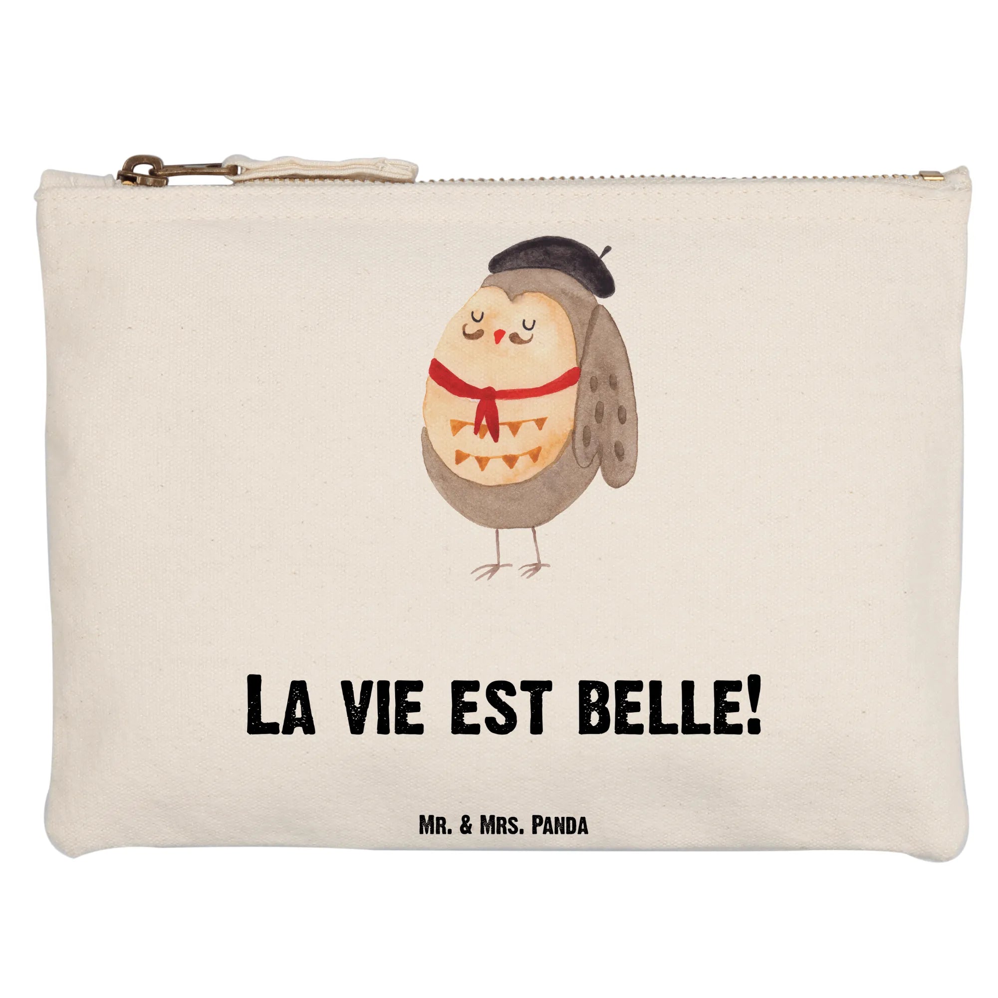 Entdecke die zauberhafte Schminktasche Eule Französisch von Mr. & Mrs. Panda, die nicht nur deine Kosmetikartikel stilvoll aufbewahrt, sondern auch mit ihrem niedlichen Design Freude verbreitet. Diese wunderschöne Kosmetiktasche ist aus 100% weicher Baumwolle gefertigt und bietet ausreichend Platz für all deine Schönheitsprodukte. Die Eule, die hier im typischen französischen Look mit Hut, Fliege und Schnurrbart daherkommt, bringt ein Stück Paris in dein Zuhause oder Büro. Der liebevolle Spruch 'La vie est belle!' lädt dich dazu ein, das Leben in vollen Zügen zu genießen!