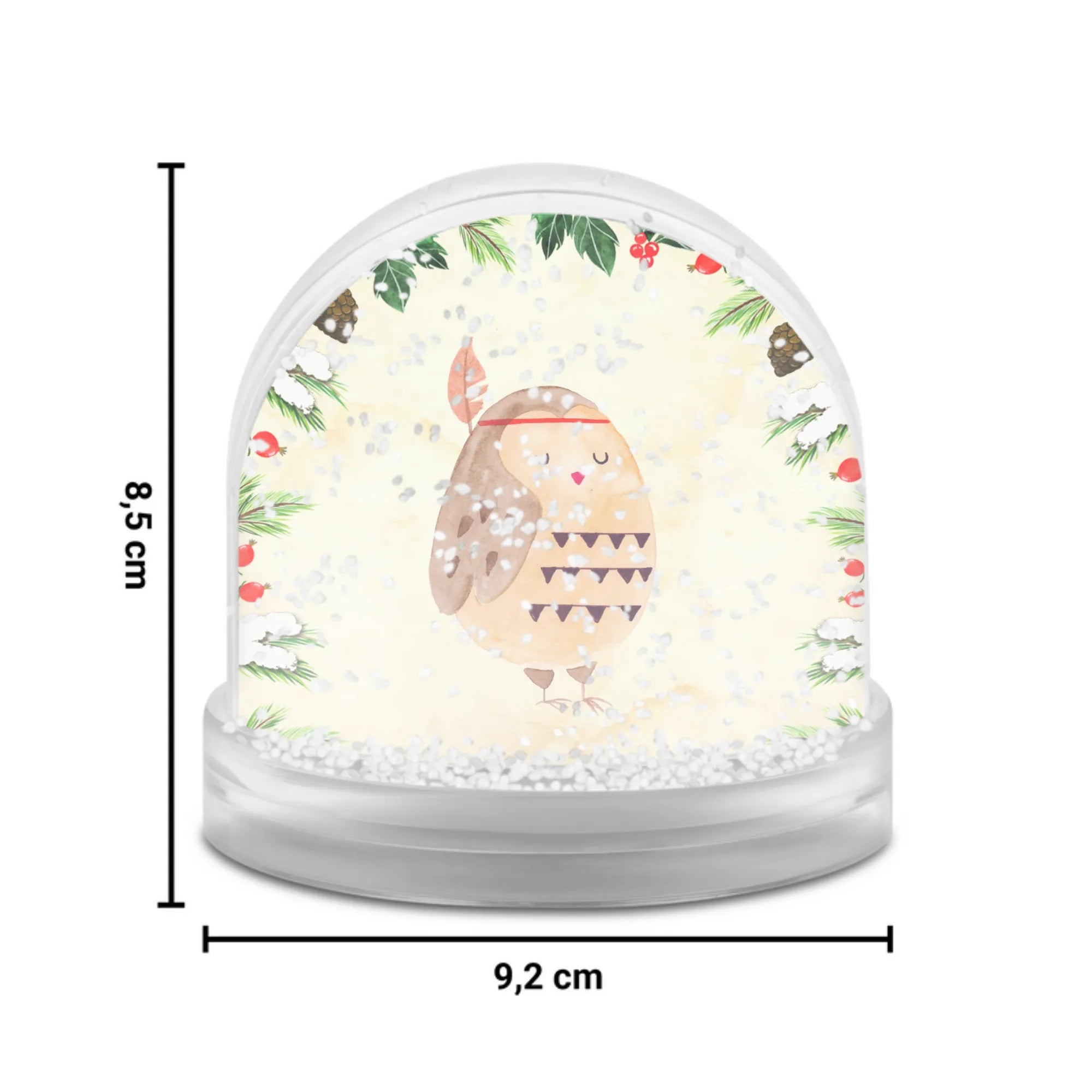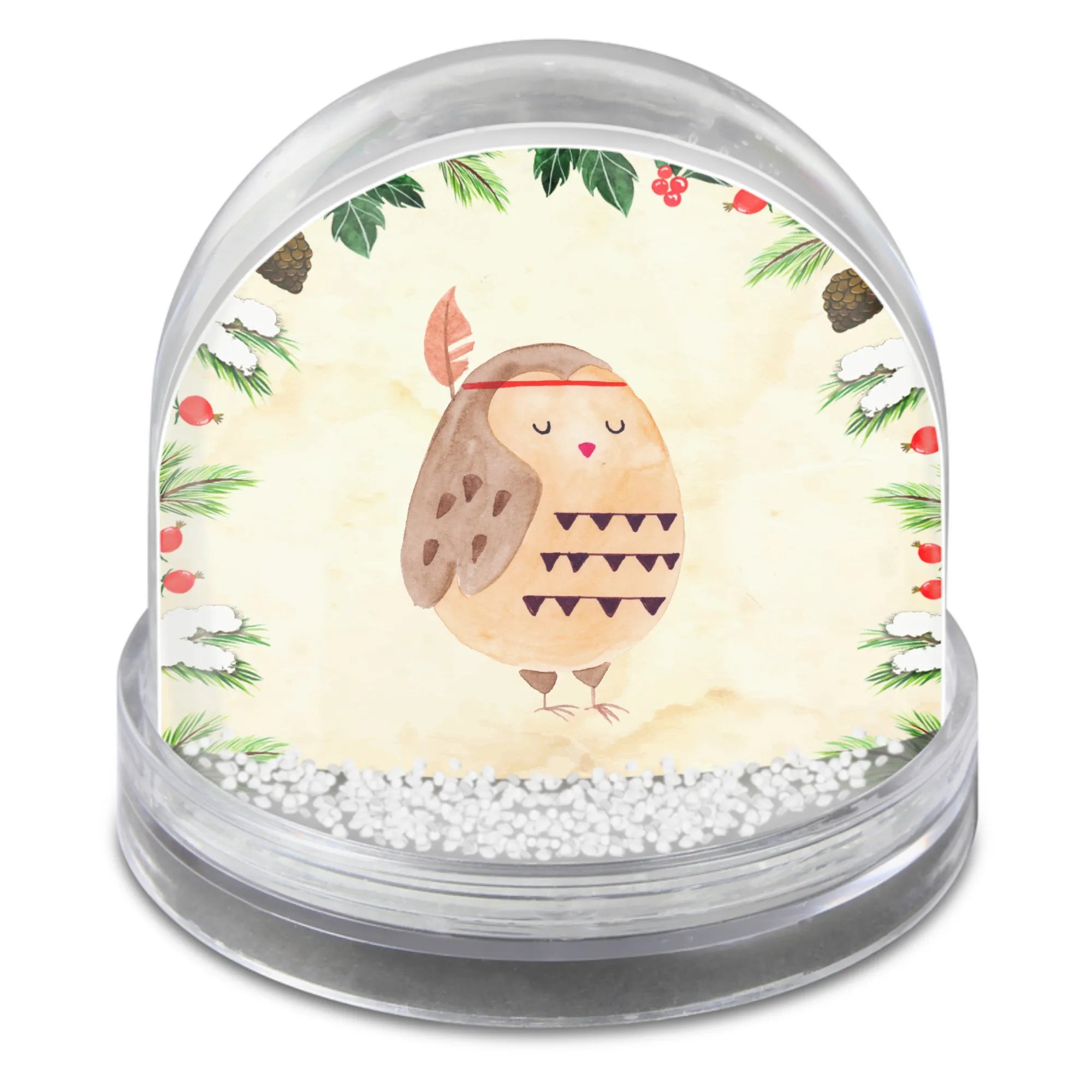 Schneekugel Eule Federschmuck - Naturpapier