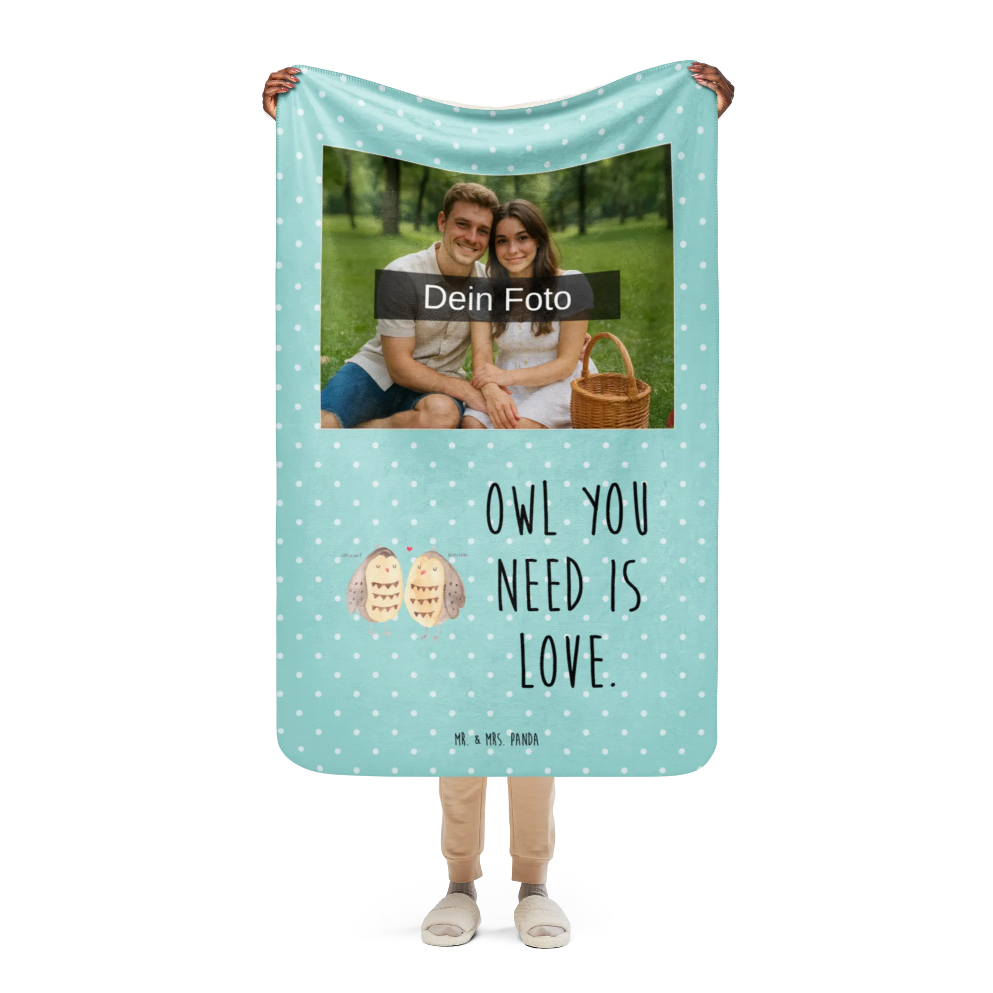 Sherpa Foto Kuscheldecke Eulen Liebe - 130 x 155 cm