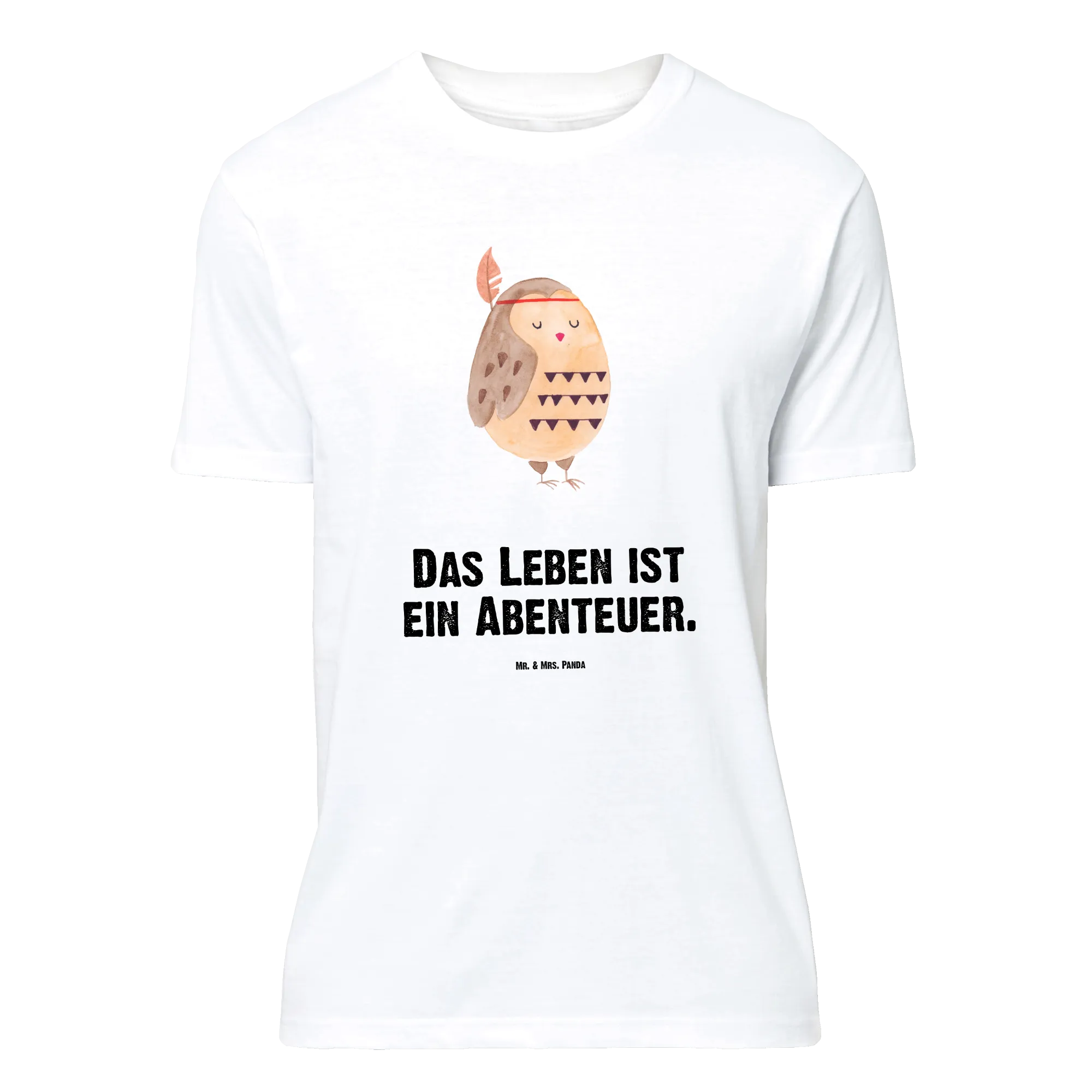 Unser Größe S T-Shirt mit dem liebevollen Motiv „Eule Federschmuck" aus der Eulen-Kollektion ist eine zauberhafte Kombination aus Humor, Stil und Botschaft. Die handgezeichnete Eule von Mrs. Panda trägt einen hübschen Federschmuck und wird begleitet vom Spruch „Das Leben ist ein Abenteuer." – ein fröhlicher Reisespruch, der zum Träumen und Aufbrechen einlädt.