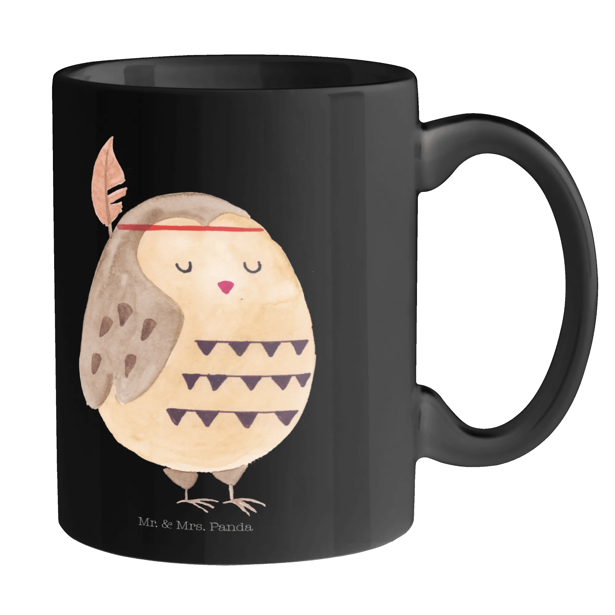 Tasse Eule Federschmuck - ohne Spruch - Keramik Schwarz - Schwarz