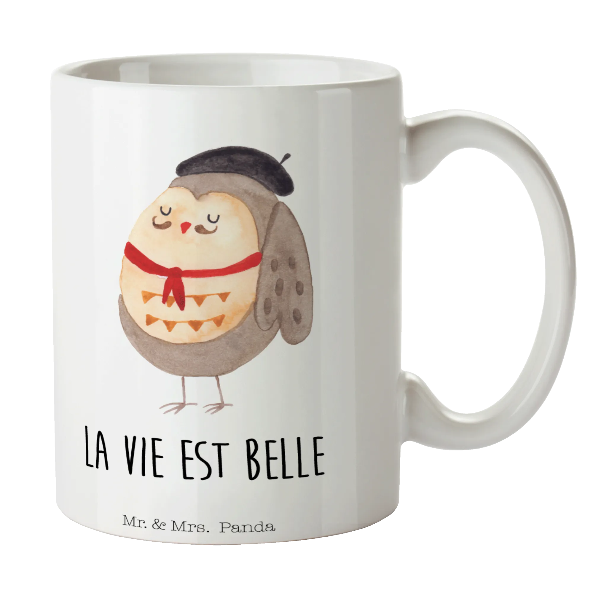 Entdecke die bezaubernde Tasse mit dem niedlichen Motiv einer französischen Eule von Mr. & Mrs. Panda! Diese wundervolle Tasse ist mehr als nur ein Kaffeebecher. Mit dem liebevollen Spruch 'La vie est belle!' bringt sie ein Stück französische Lebensfreude in dein Zuhause oder Büro. Perfekt für jeden, der Eulen und die französische Kultur liebt!