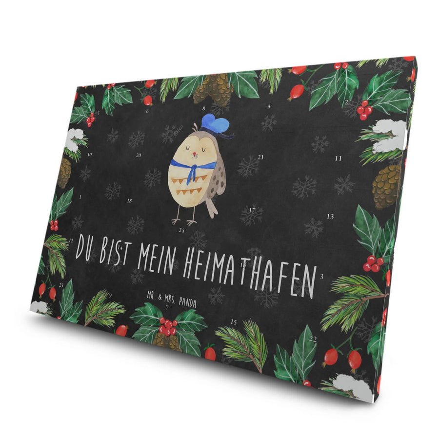 Der Tee Adventskalender Eule Matrosen von Mr. & Mrs. Panda ist die perfekte Begleitung in der Adventszeit. Mit diesem liebevoll gestalteten Kalender versüßt du dir oder deinen Liebsten die Wartezeit auf Weihnachten. Die Eule im Matrosen-Look, mit ihrem treuen Blick, gleicht einem kleinen Hafen, der Heimat und Geborgenheit symbolisiert. Der Slogan "Du bist mein Heimathafen" ist ein liebevolles Statement, das jeden Tag beim Öffnen eines neuen Türchens ein Lächeln ins Gesicht zaubert.