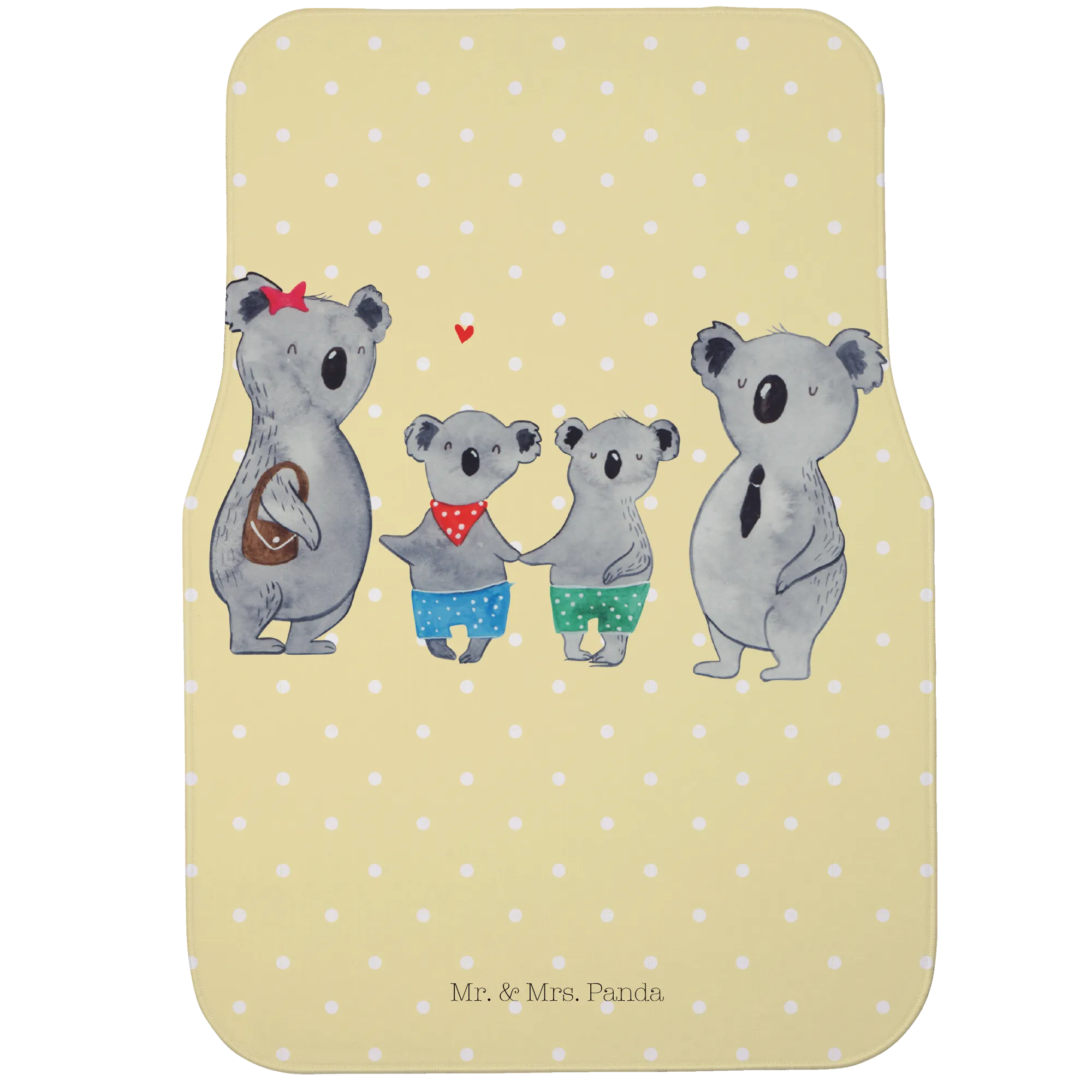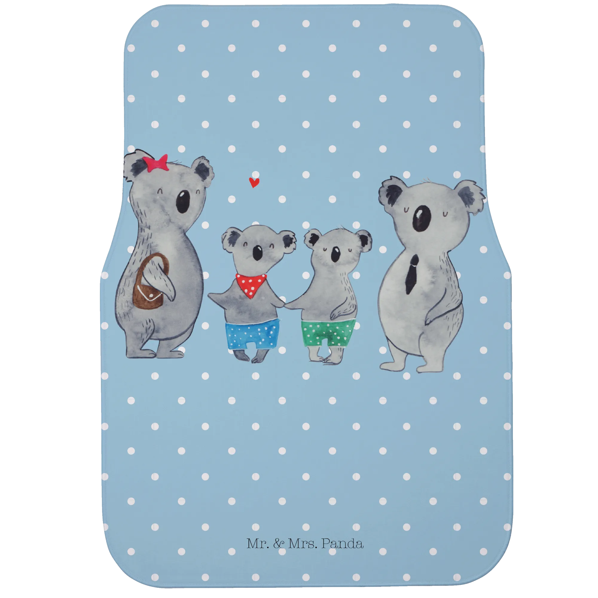 Die Fahrer Autofußmatte "Koala Familie zwei" aus der bezaubernden Familien Kollektion von Mr. & Mrs. Panda ist das perfekte Geschenk für alle, die ihren Wagen nicht nur bei Fahrten, sondern auch bei Zuhause liebevoll gestalten möchten. Diese Fußmatte ist mehr als nur ein praktisches Accessoire – sie ist ein wahrer Hingucker! Mit einem entzückenden Motiv, das eine liebevolle Koalafamilie zeigt, bringt sie Freude in jedes Autofahrzeug. Der größte Koala, der wie eine Mutterfigur wirkt, ist mit einem roten Sternchen im Haar dargestellt. Neben ihr steht ein fröhlicher Koala in einem roten Halstuch, während die beiden kleineren Koalas, die die Kinder repräsentieren, in ihren bunten Shorts strahlen. Der Vater-Koala, elegant im Anzug mit Krawatte, rundet das fröhliche Bild ab.