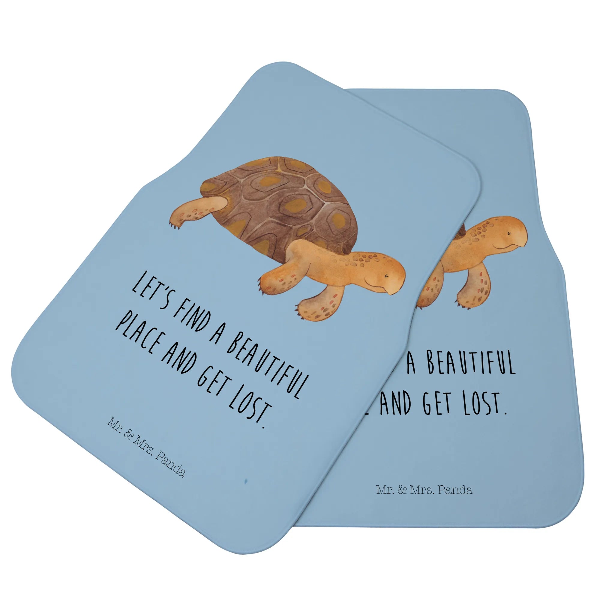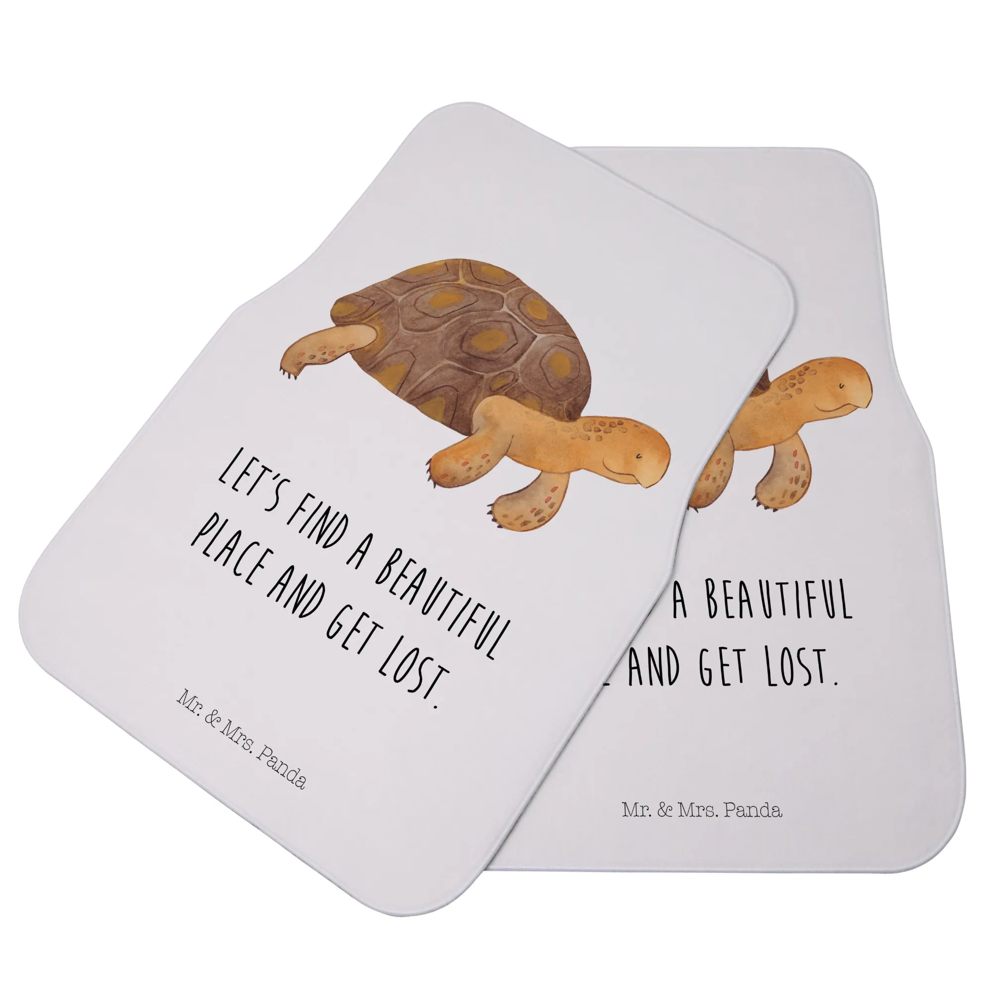Die Fahrer Autofußmatte mit dem niedlichen Motiv der marschierenden Schildkröte ist das perfekte Geschenk für alle Freunde des Abenteuers und der Reisefreude!