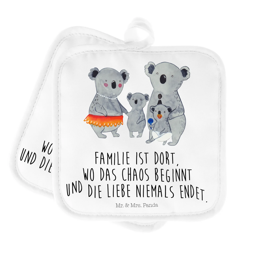 Liebevoll, lustig und praktisch: Unser 2er Set Topflappen "Koala Familie" aus der Mr. & Mrs. Panda Familien-Kollektion bringt Wärme in deine Küche. Die fröhliche Koala-Familie mit zwei Erwachsenen und zwei Kindern strahlt Geborgenheit und Zusammenhalt aus. Dazu der herzliche Spruch: "Familie ist dort, wo das Chaos beginnt und die Liebe niemals endet." – so wird Kochen zum Familienmoment. 😊