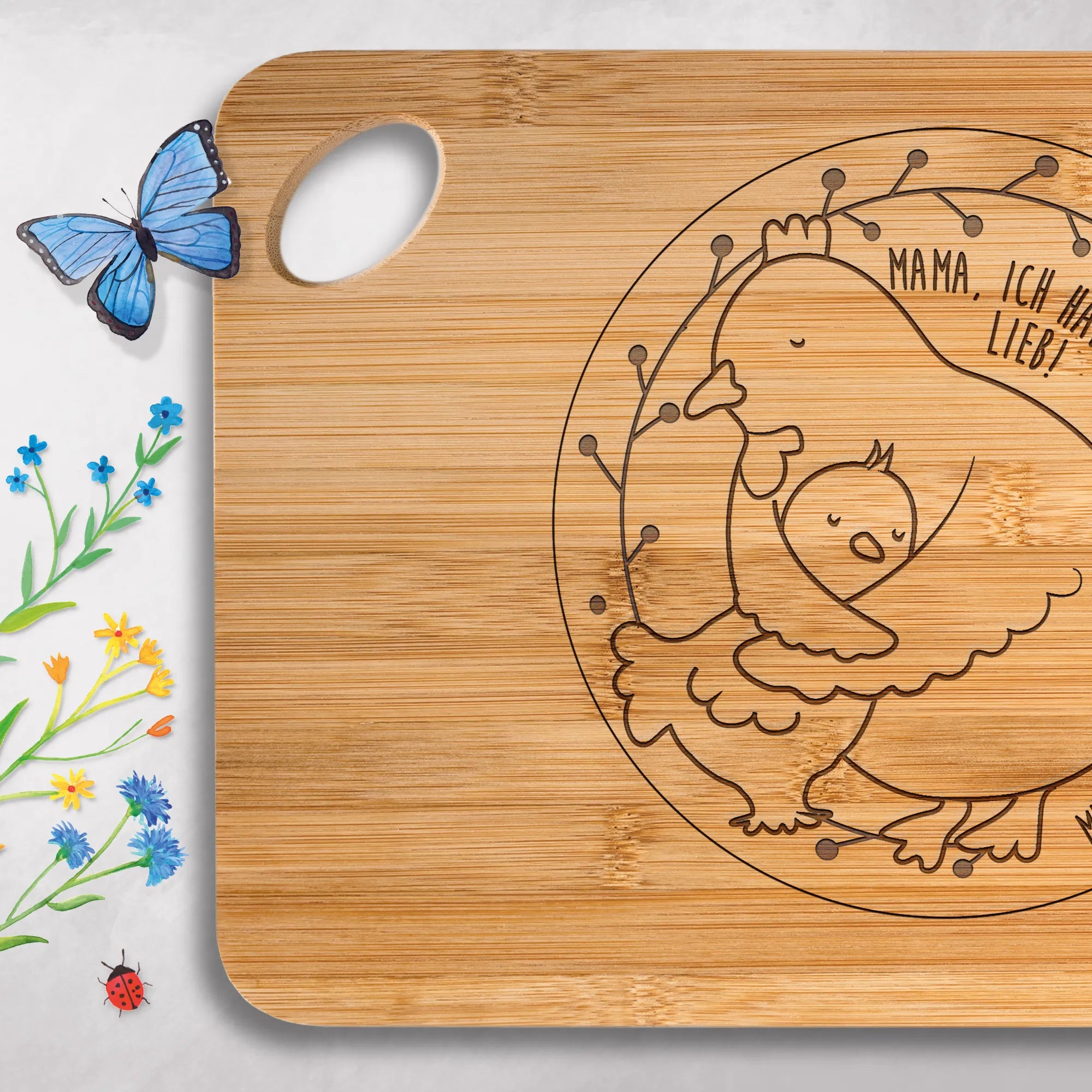 Das Bambus-Schneidebrett "Henne Mama" aus der liebevollen Familien Kollektion von Mr. & Mrs. Panda ist das perfekte Geschenk für alle, die ihre Liebe zur Familie zelebrieren möchten!
