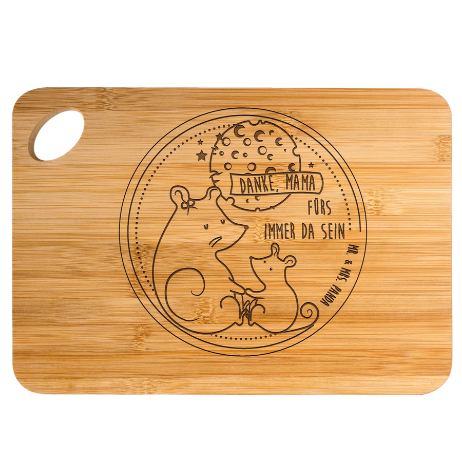 Zauberhaftes Schneidebrett "Maus Mama" aus der Familien Kollektion von Mr. & Mrs. Panda – ein tolles Geschenk für Mama, das Herz und Küche verbindet. Das süße Maus-Motiv wurde liebevoll von Mrs. Panda handgezeichnet und als dauerhafte Lasergravur auf das Holzbrett übertragen. So bleibt die zarte Illustration lange sichtbar und zaubert jeden Tag ein Lächeln auf Dein Gesicht. ❤️🐭