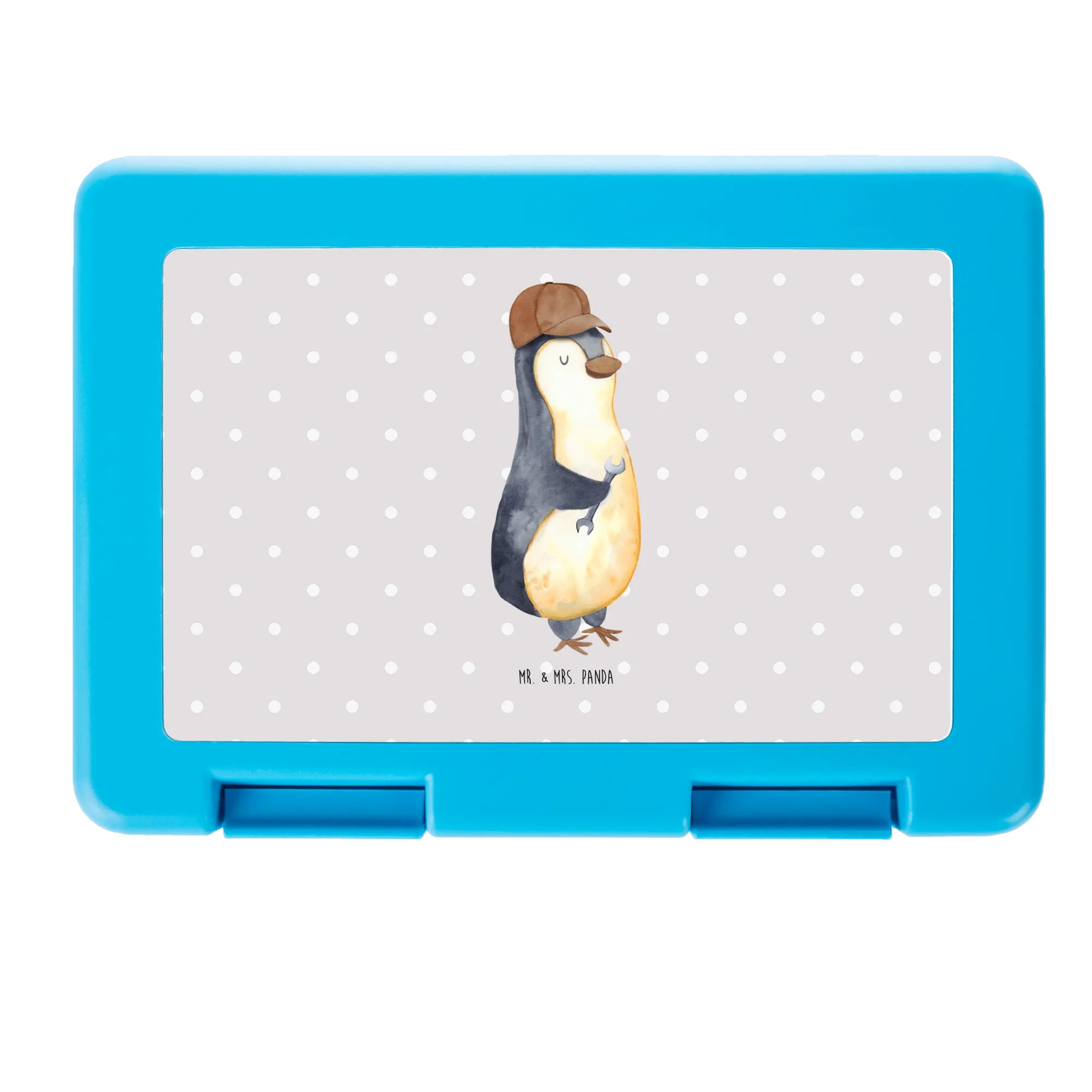 Diese liebevoll gestaltete Brotdose vereint Alltagstauglichkeit mit einem Augenzwinkern. Das fröhliche Motiv zeigt einen sympathischen Pinguin mit brauner Kappe und Schraubenschlüssel – ein perfektes Geschenk für Papa zum Vatertag oder einfach als kleine Überraschung für den besten Papa der Welt. Das Design stammt aus der Familien-Kollektion von Mr. & Mrs. Panda und wurde mit viel Liebe von Mrs. Panda als Aquarellmotiv entworfen.
