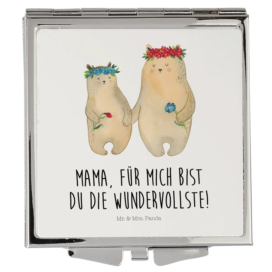 Handtaschenspiegel quadratisch Bären mit Blumenkranz - mit Spruch - Weiß