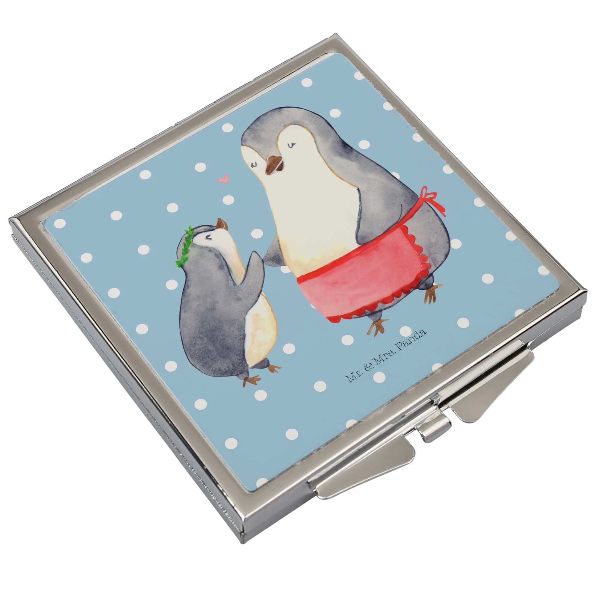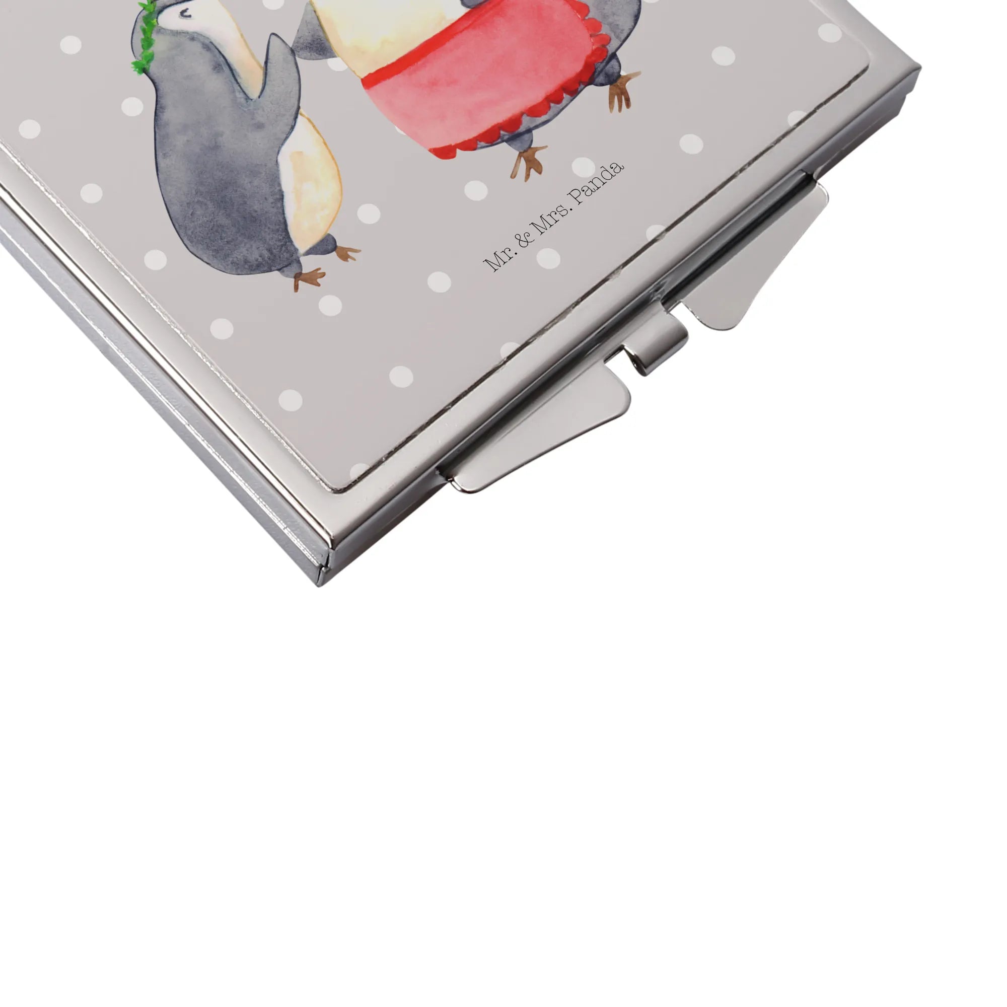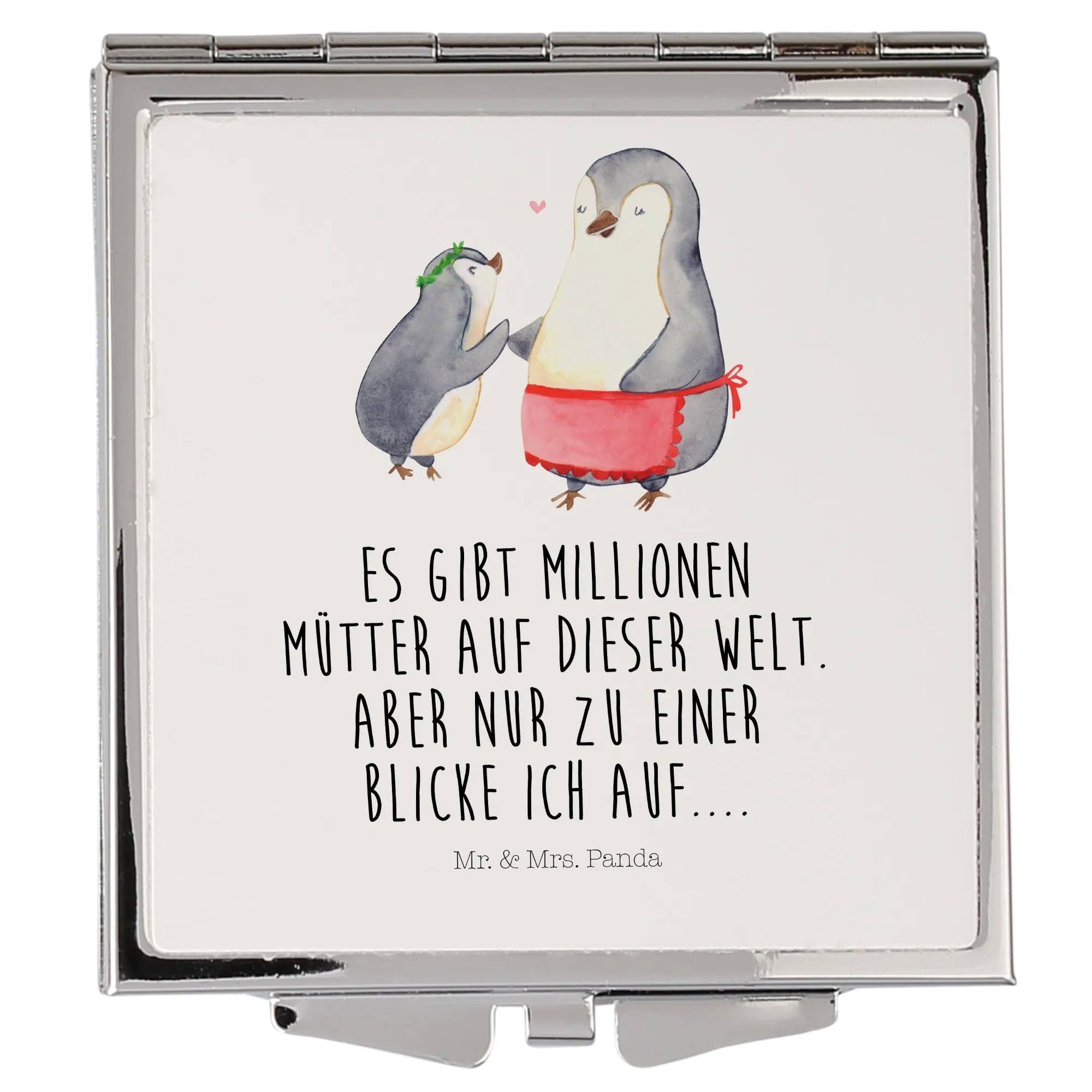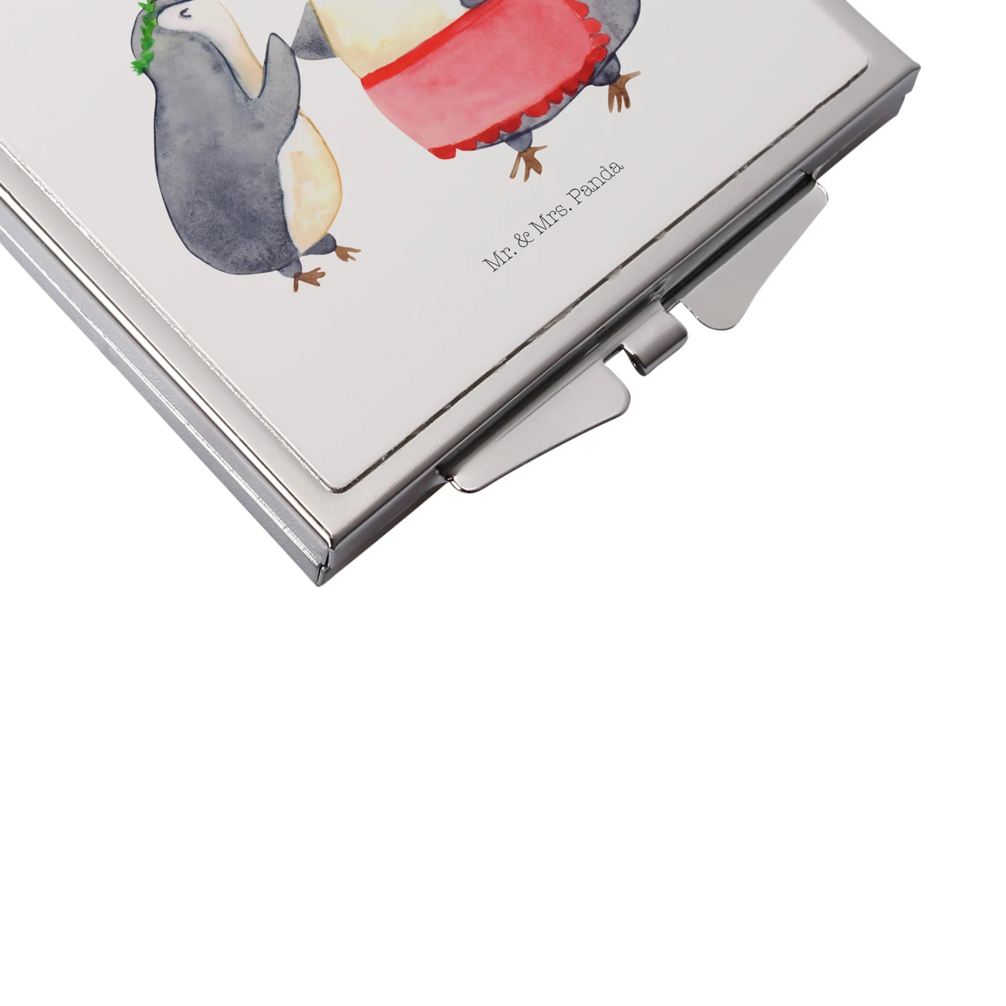 Schminkspiegel Pinguin mit Kind - mit Spruch - Weiß