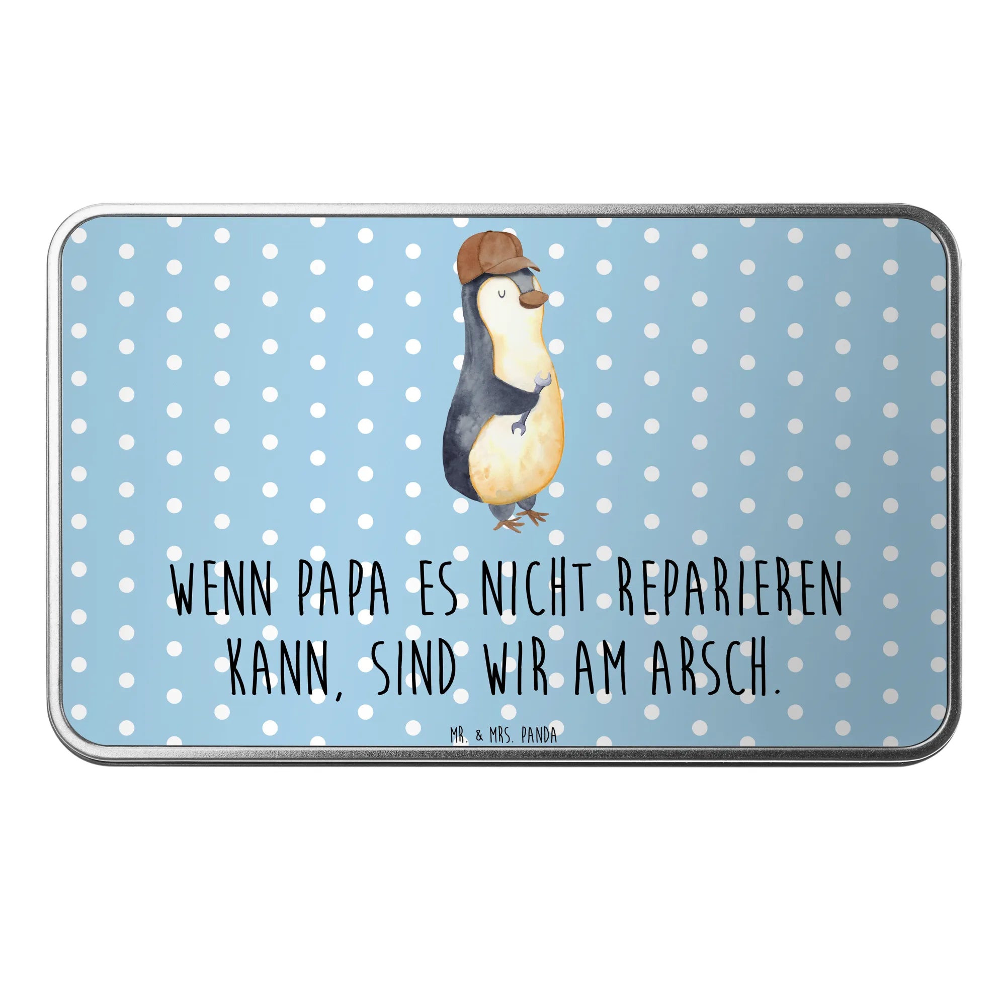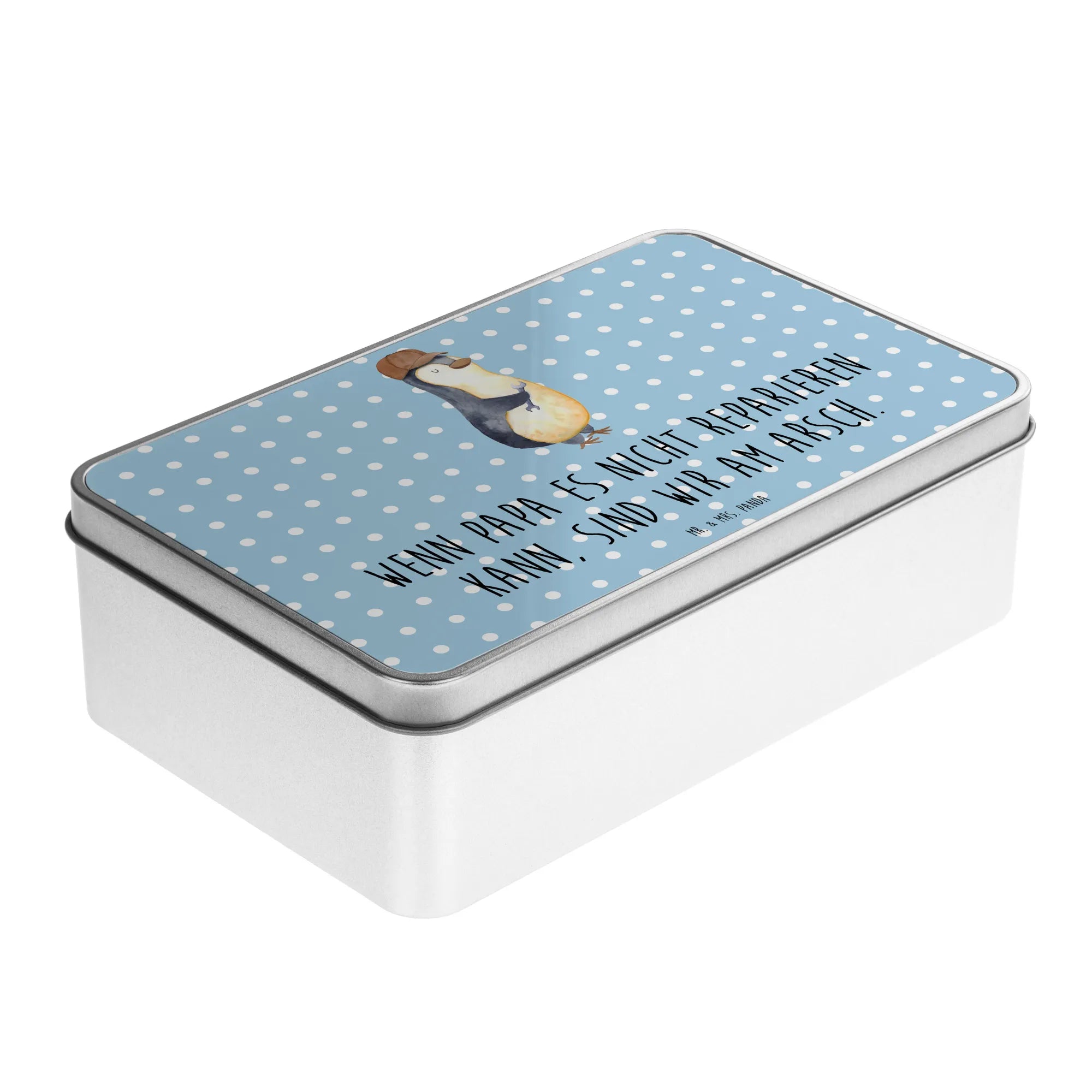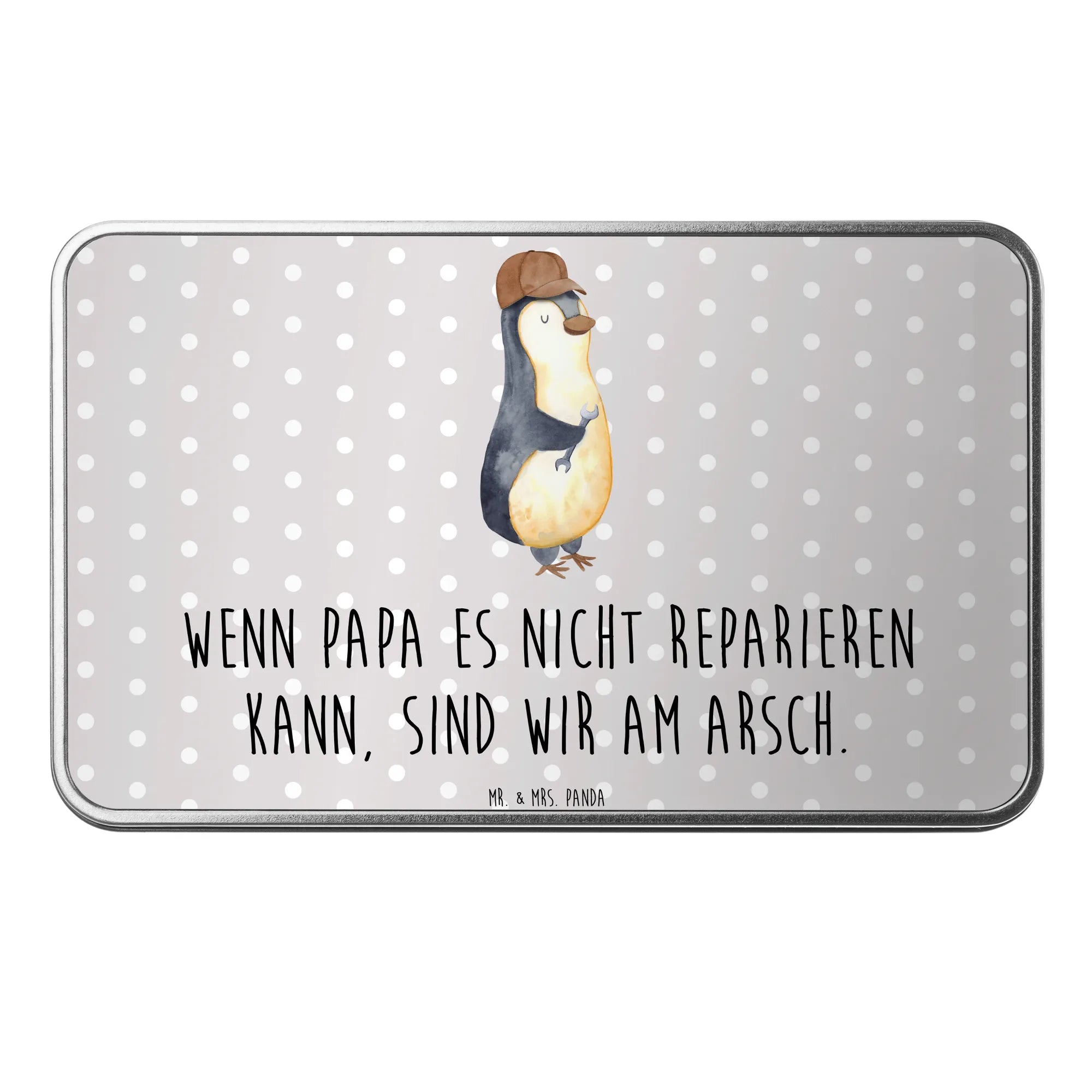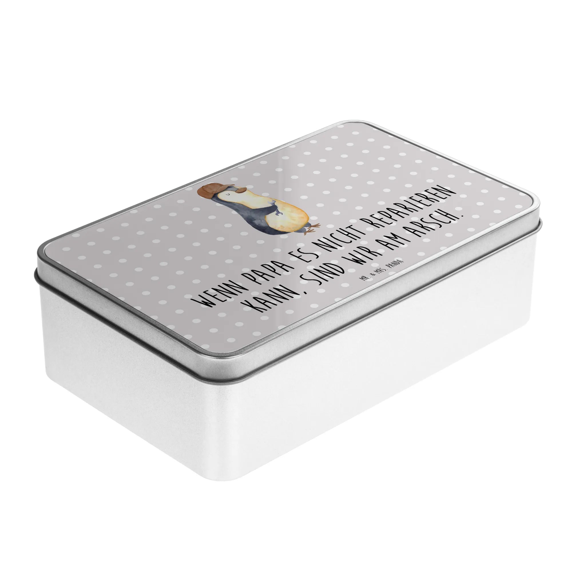 Schenke deinem Papa etwas ganz Besonderes mit der wunderschönen Metalldose rechteckig von Mr. & Mrs. Panda! Diese praktische und zugleich liebevoll gestaltete Dose ist nicht nur ein echter Hingucker, sondern auch ein super Alleskönner. Mit dem witzigen Spruch "Wenn Papa es nicht reparieren kann, sind wir am Arsch" und dem sympathischen Pinguin-Motiv, der mit einem Schraubenschlüssel posiert, wird diese Metalldose zum perfekten Geschenk zum Vatertag, für Geburtstage oder einfach als kleine Aufmerksamkeit für den besten Papa der Welt.