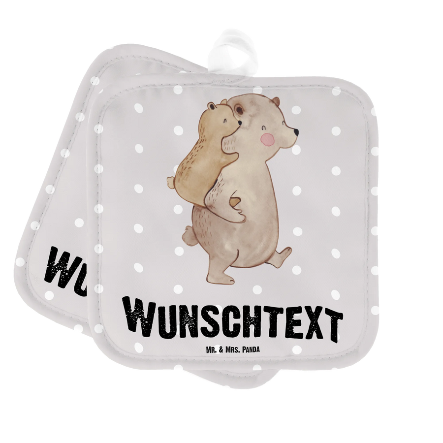 Personalisierte Topflappen Papa Bär - Grau Pastell