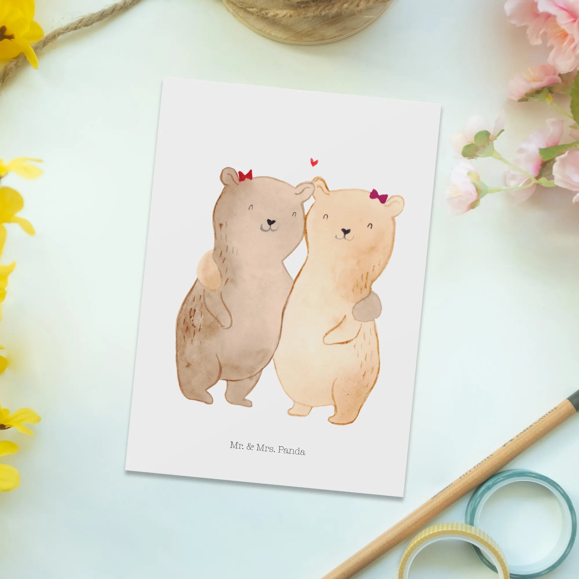 Postkarte Bären Schwestern - mit Spruch - Weiß