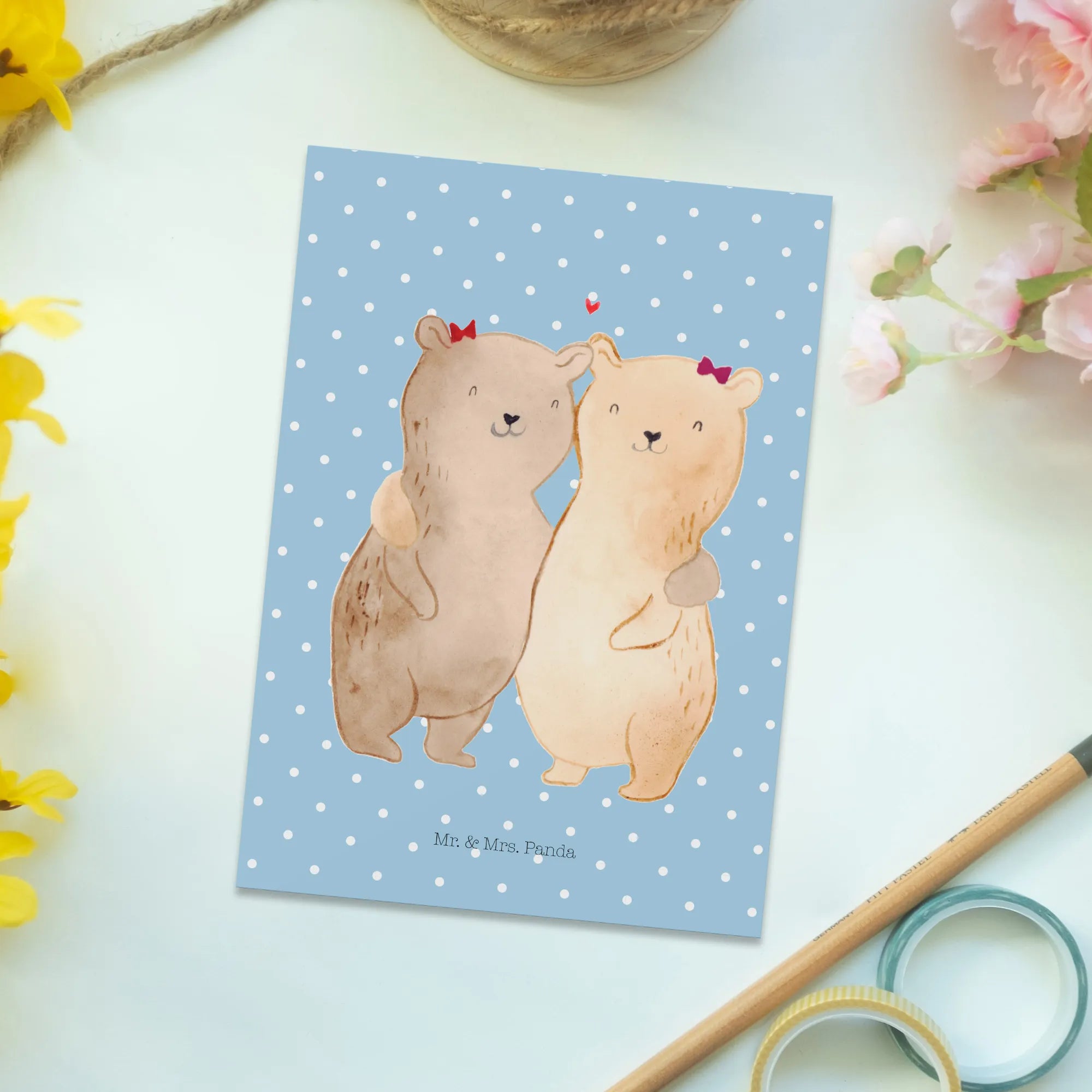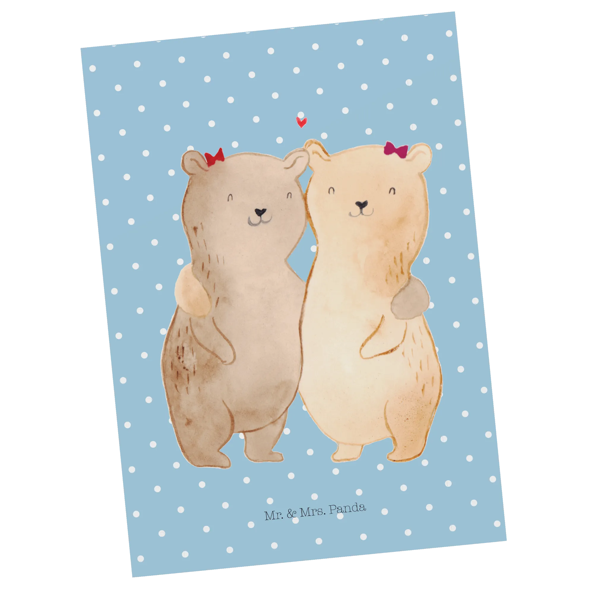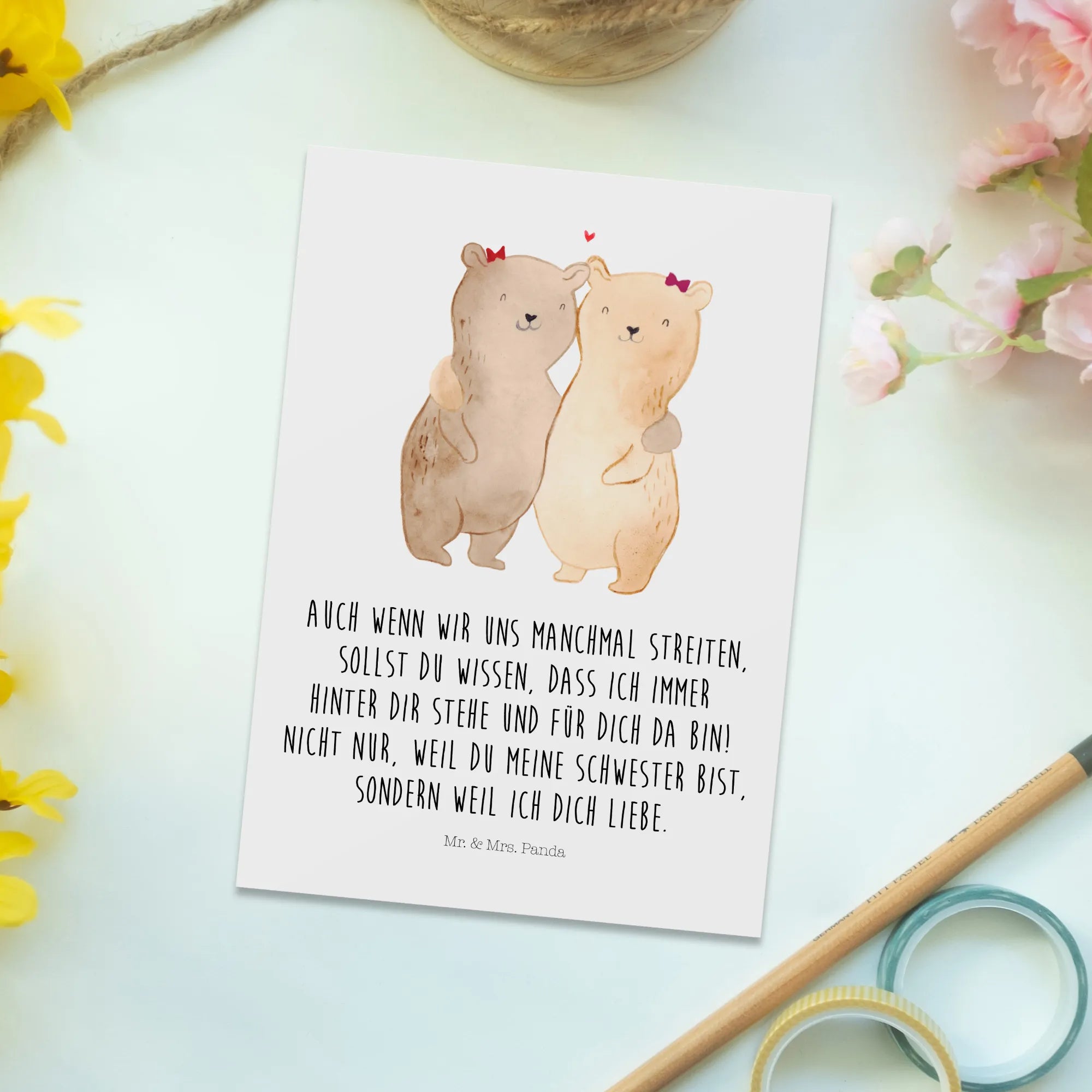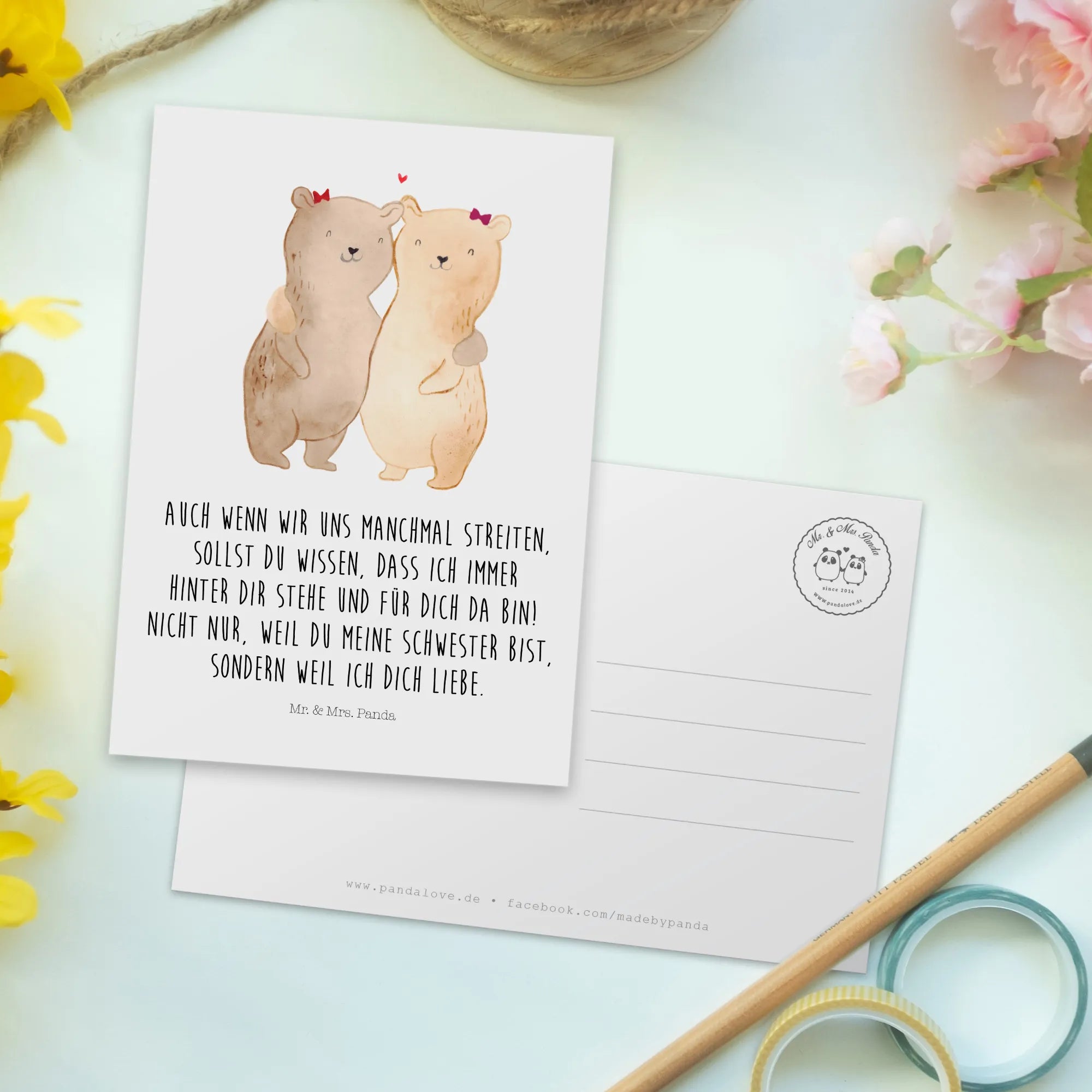 Die hochwertige Postkarte "Bären Schwestern" von Mr. & Mrs. Panda ist das perfekte Geschenk für deine Schwester oder für jeden Anlass, an dem du deiner Schwester mal wieder zeigen möchtest, wie lieb du sie hast. Die Karte besteht aus edlem, 300 Gramm schwerem Karton, der nicht nur robust ist, sondern auch einen hochglänzend veredelten Druck besitzt, der die süßen Motive zum Strahlen bringt.
