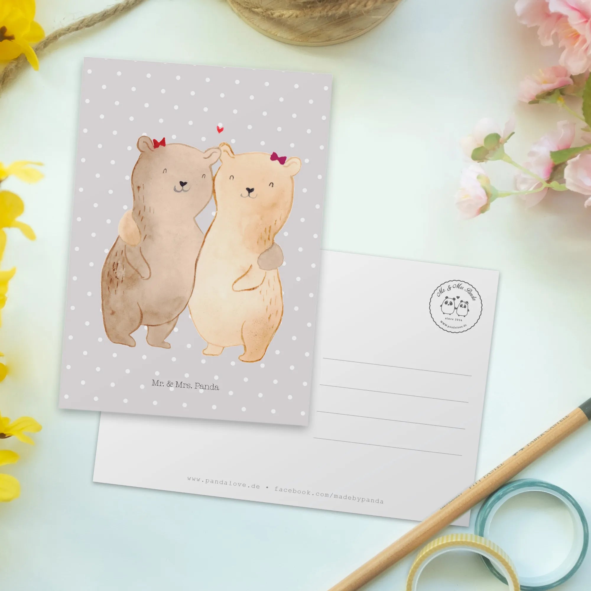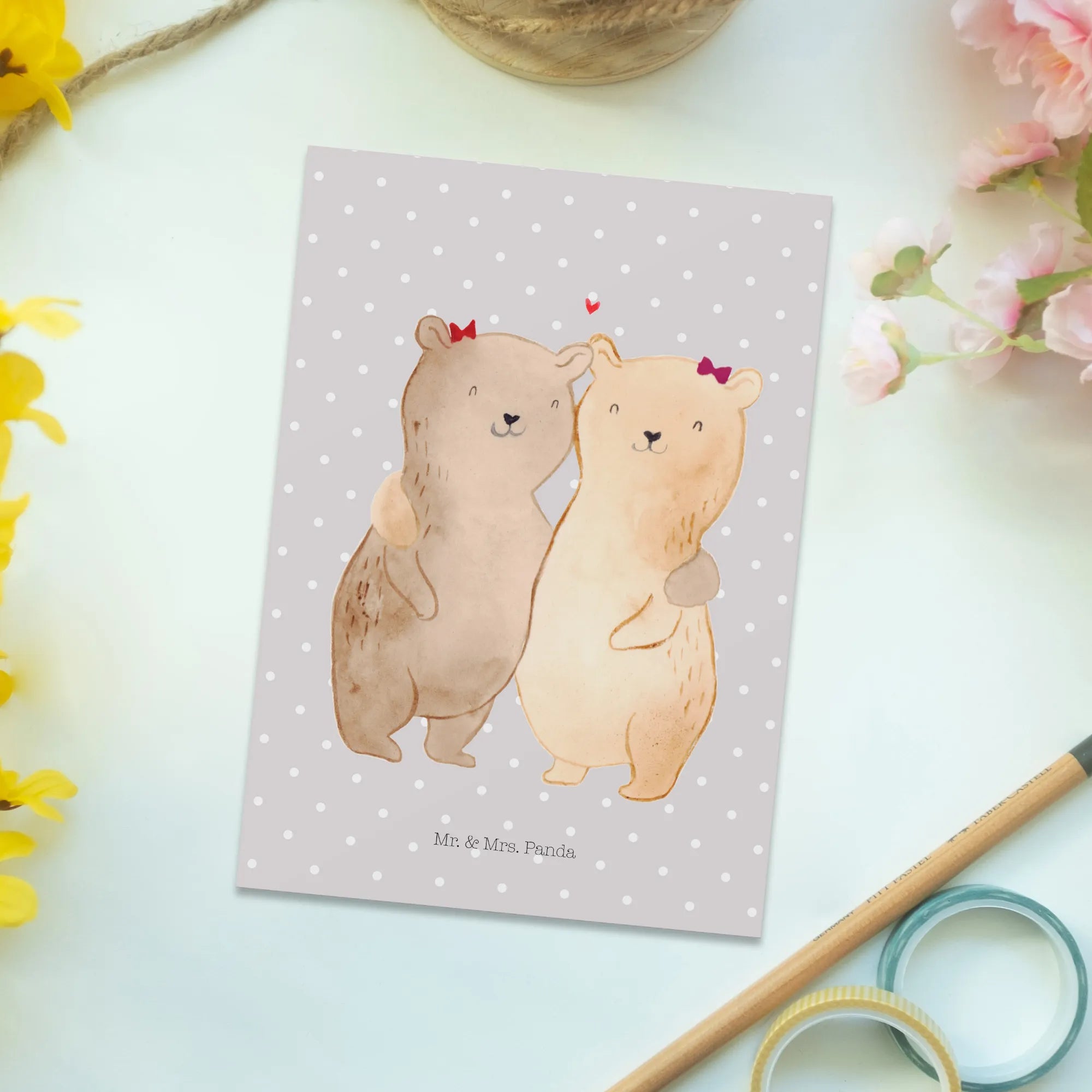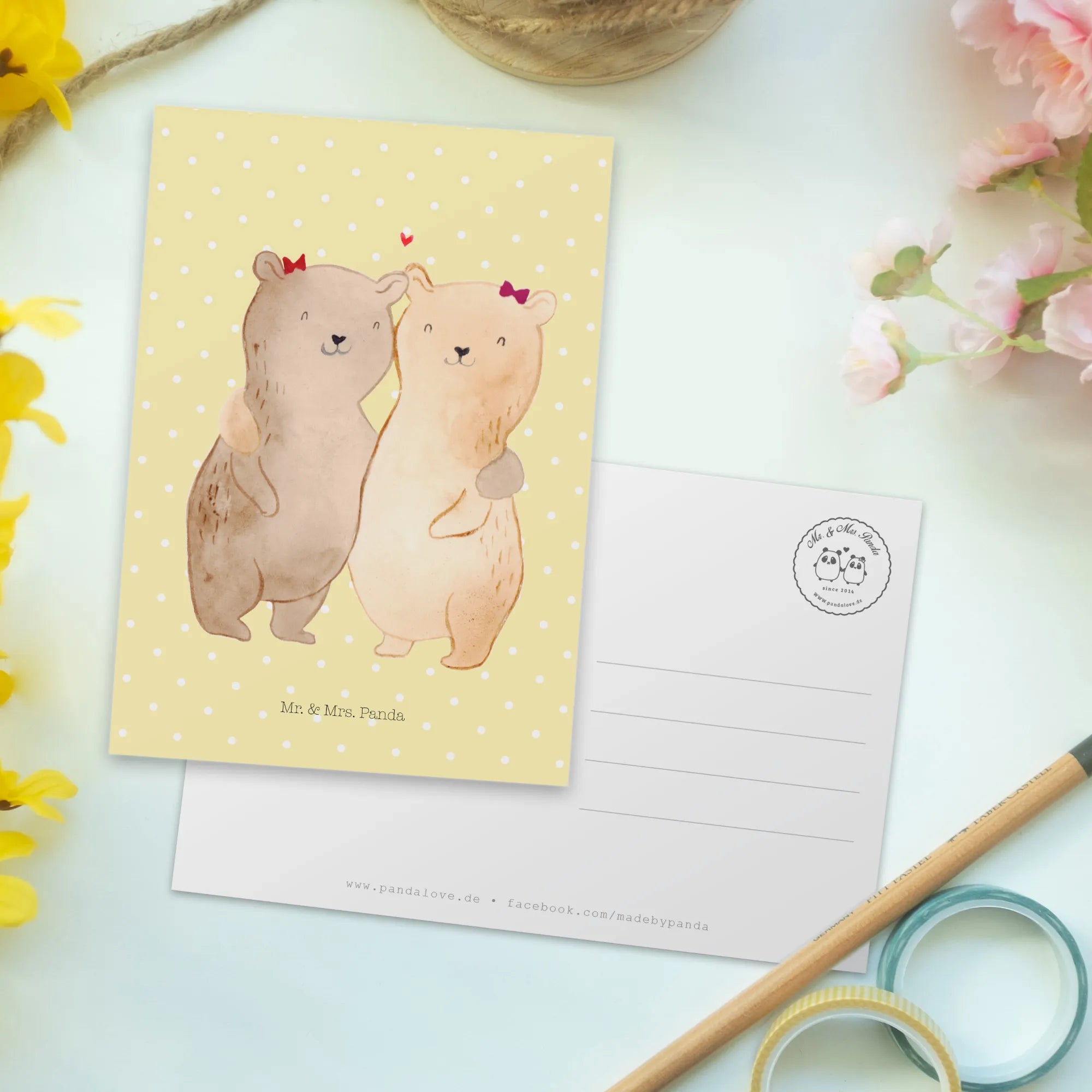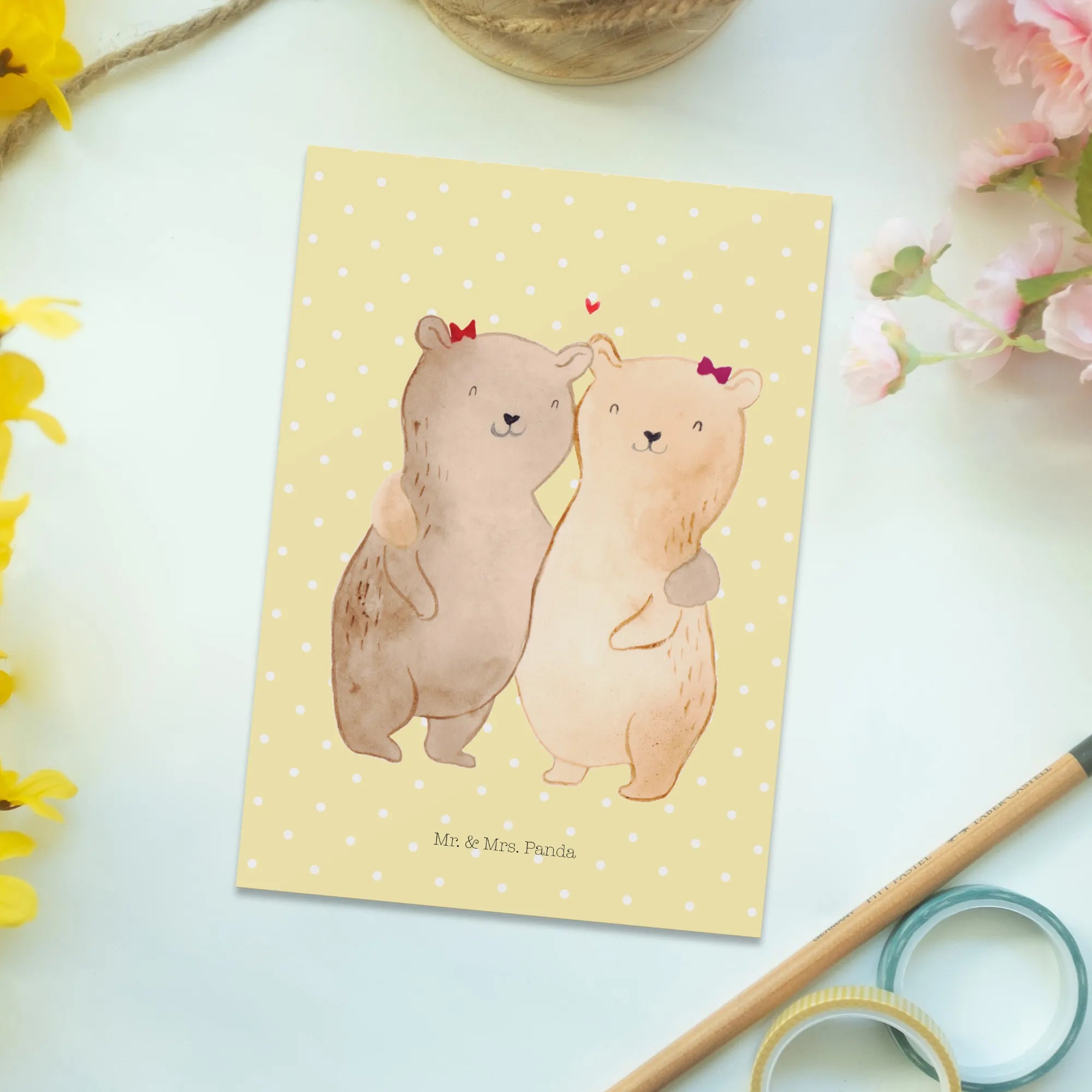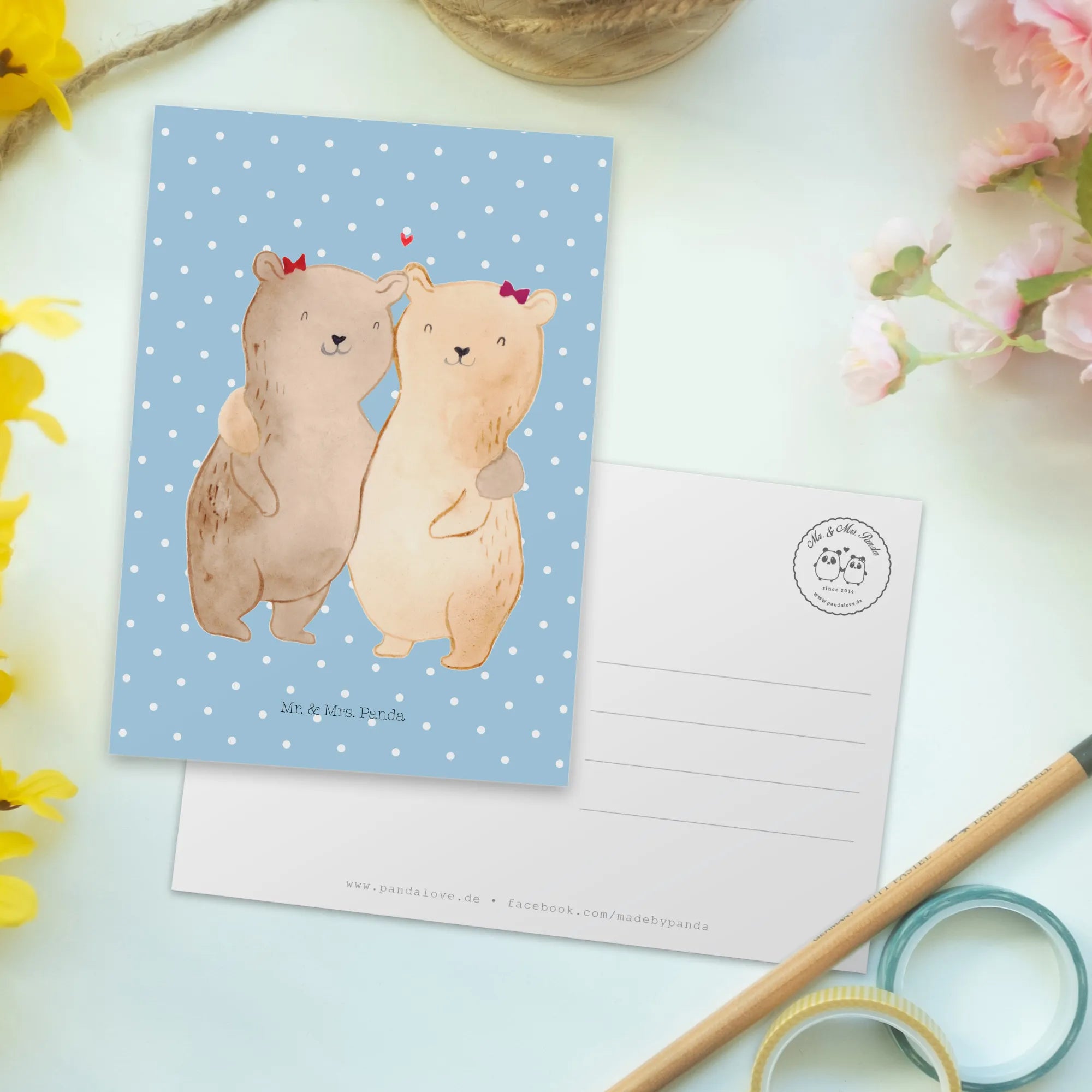 Die hochwertige Postkarte "Bären Schwestern" von Mr. & Mrs. Panda ist das perfekte Geschenk für deine Schwester oder für jeden Anlass, an dem du deiner Schwester mal wieder zeigen möchtest, wie lieb du sie hast. Die Karte besteht aus edlem, 300 Gramm schwerem Karton, der nicht nur robust ist, sondern auch einen hochglänzend veredelten Druck besitzt, der die süßen Motive zum Strahlen bringt.