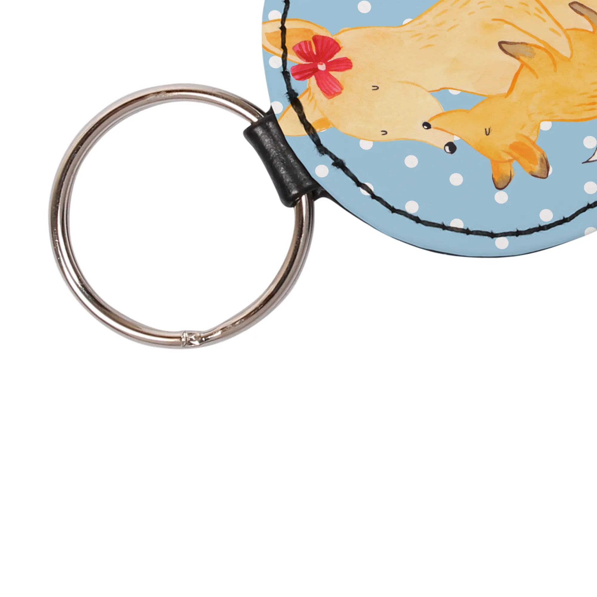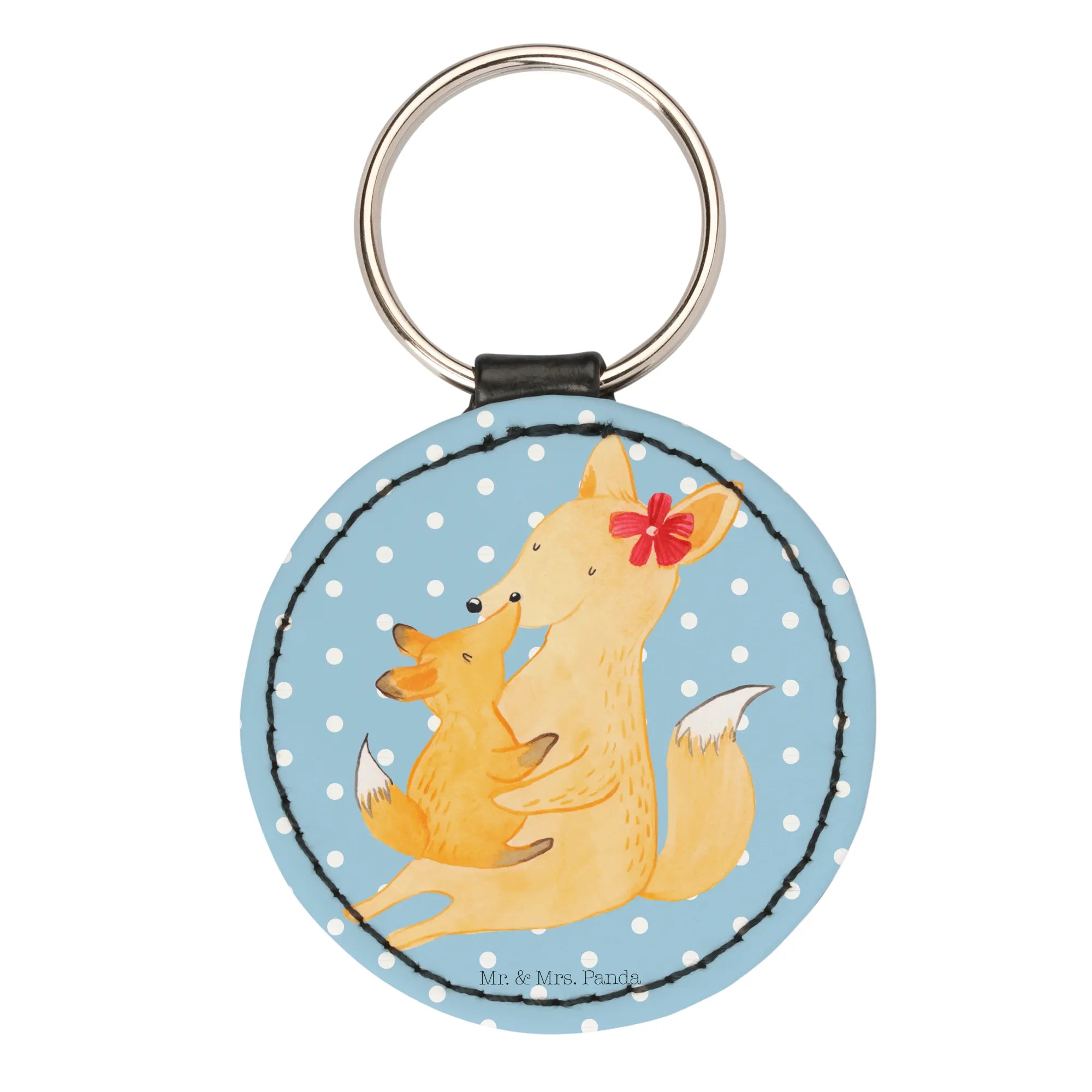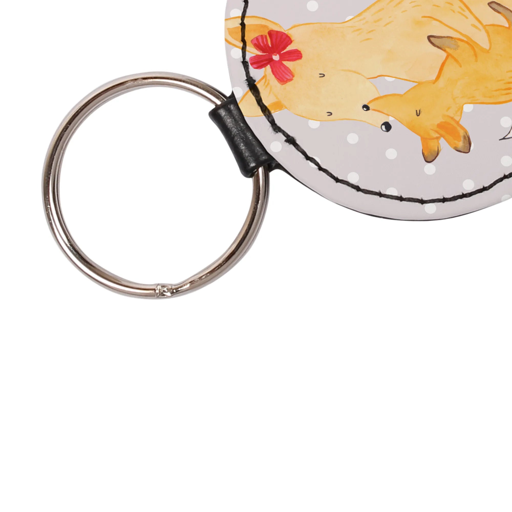 Der wunderschöne Rund Schlüsselanhänger "Fuchs Mama & Kind" von Mr. & Mrs. Panda ist das perfekte Geschenk für alle Mamas und Ihre Kinder! Mit einer liebevollen Darstellung von einer Füchsin, die ihr Junges zärtlich umarmt, vermittelt dieses charmante Design Geborgenheit und familiäre Verbundenheit.