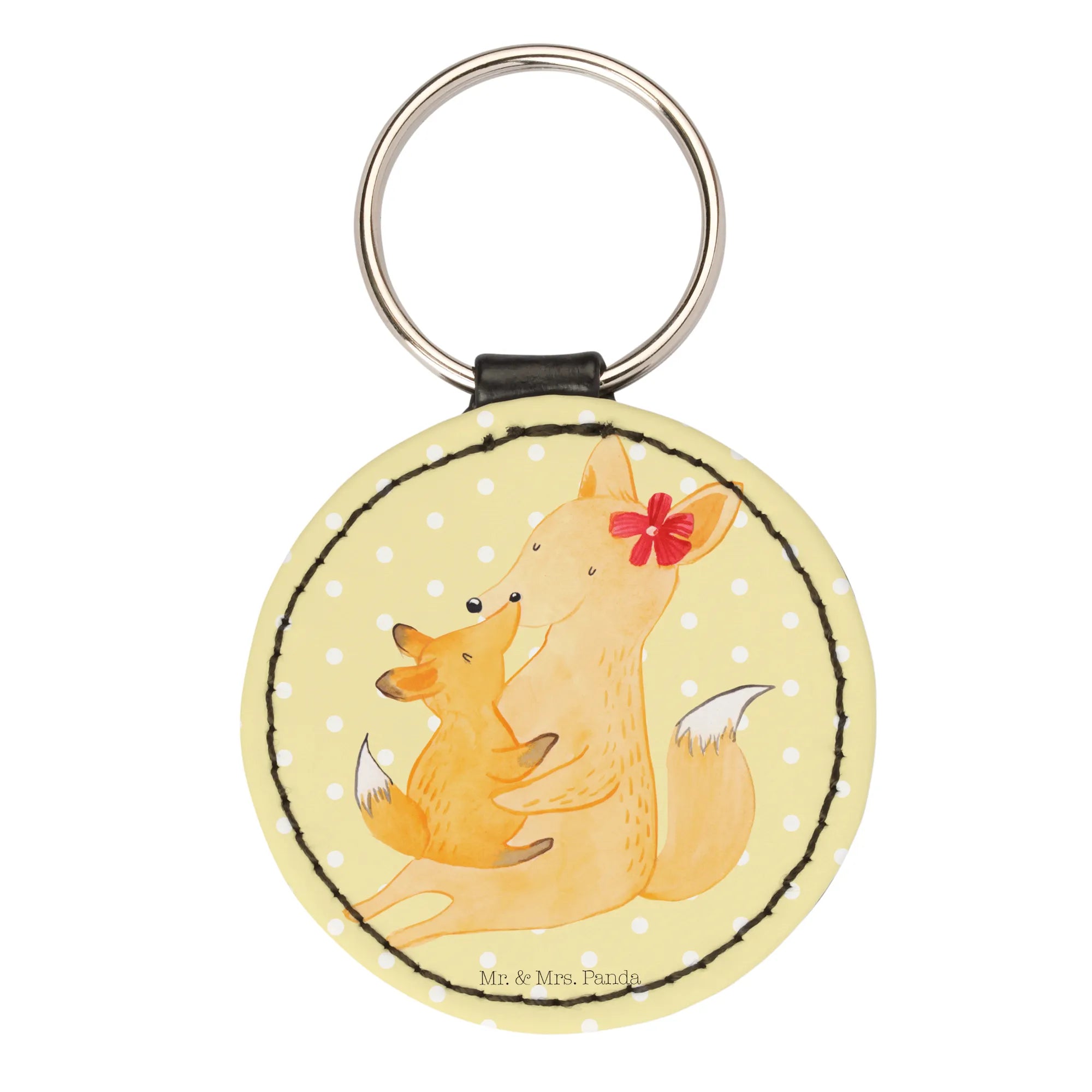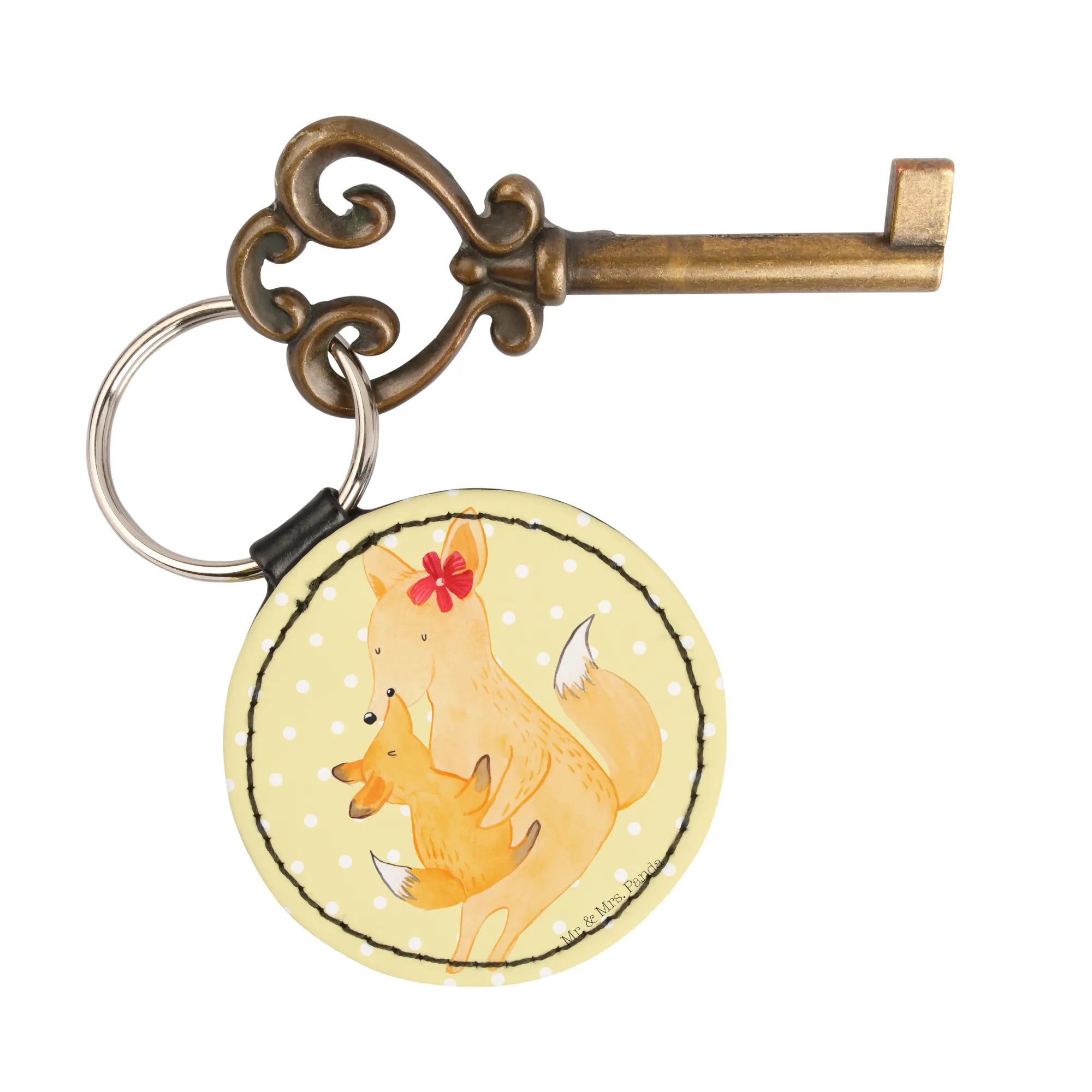 Rund Schlüsselanhänger Fuchs Mama - Gelb Pastell