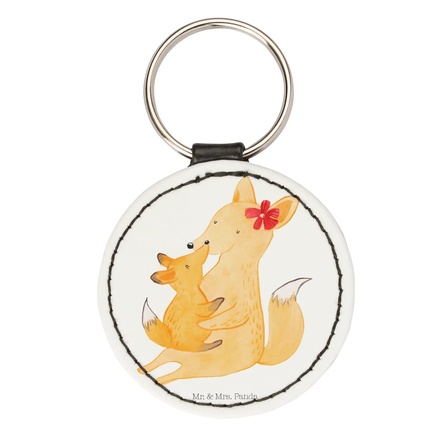 Der wunderschöne Rund Schlüsselanhänger "Fuchs Mama & Kind" von Mr. & Mrs. Panda ist das perfekte Geschenk für alle Mamas und Ihre Kinder! Mit einer liebevollen Darstellung von einer Füchsin, die ihr Junges zärtlich umarmt, vermittelt dieses charmante Design Geborgenheit und familiäre Verbundenheit.
