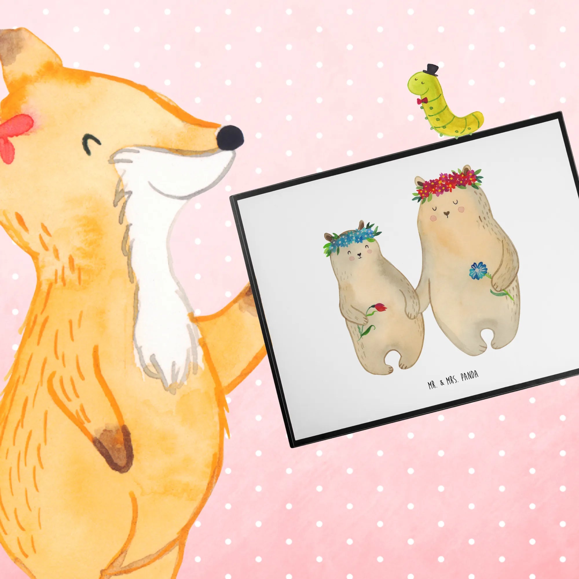 Die bezaubernde Schreibtischunterlage mit den niedlichen Bären und dem floralen Akzent von Mr. & Mrs. Panda ist das perfekte Geschenk für jeden, der seine Schreibtischecke aufpeppen möchte. Diese Schreibtischauflage ist nicht nur ein echter Hingucker, sondern auch äußerst funktional.