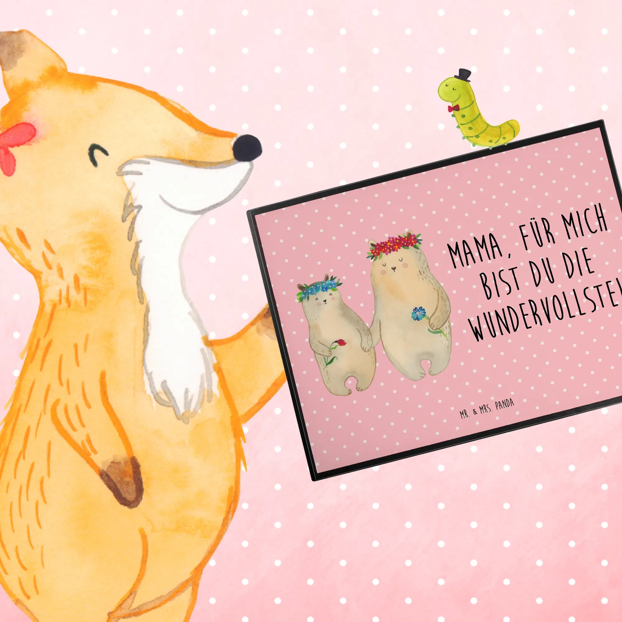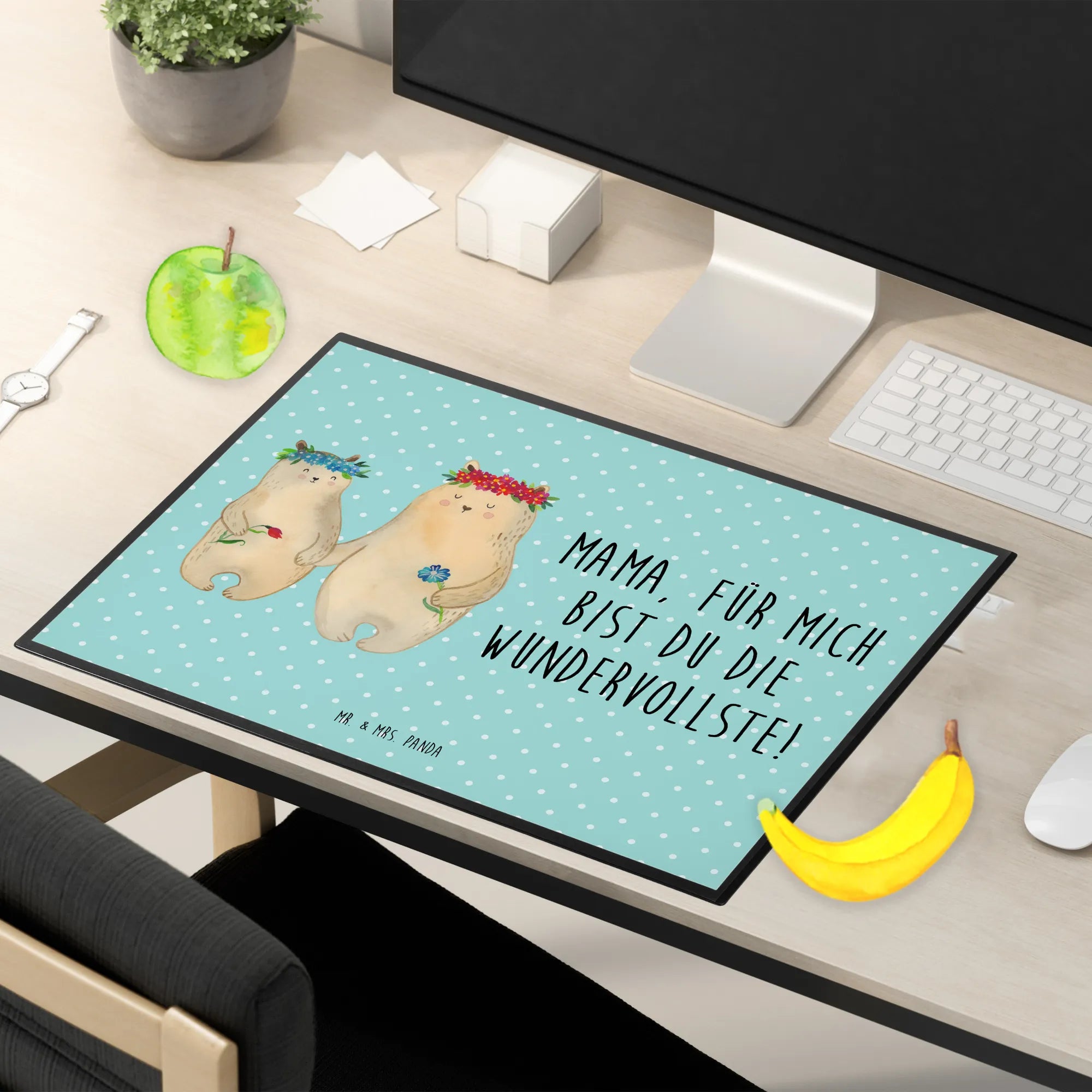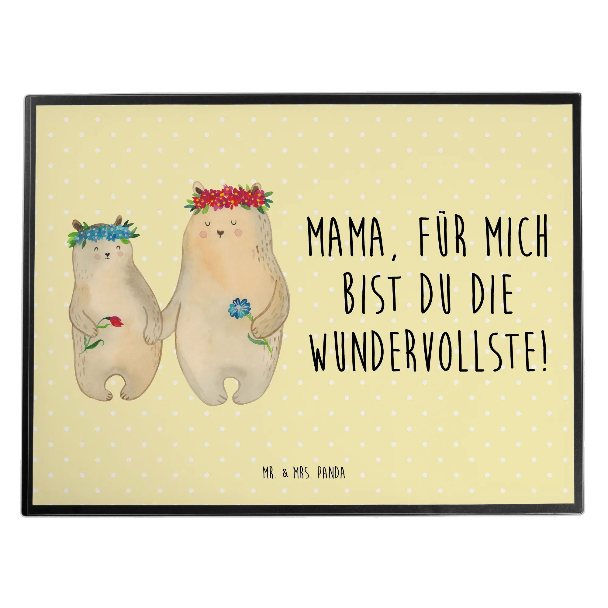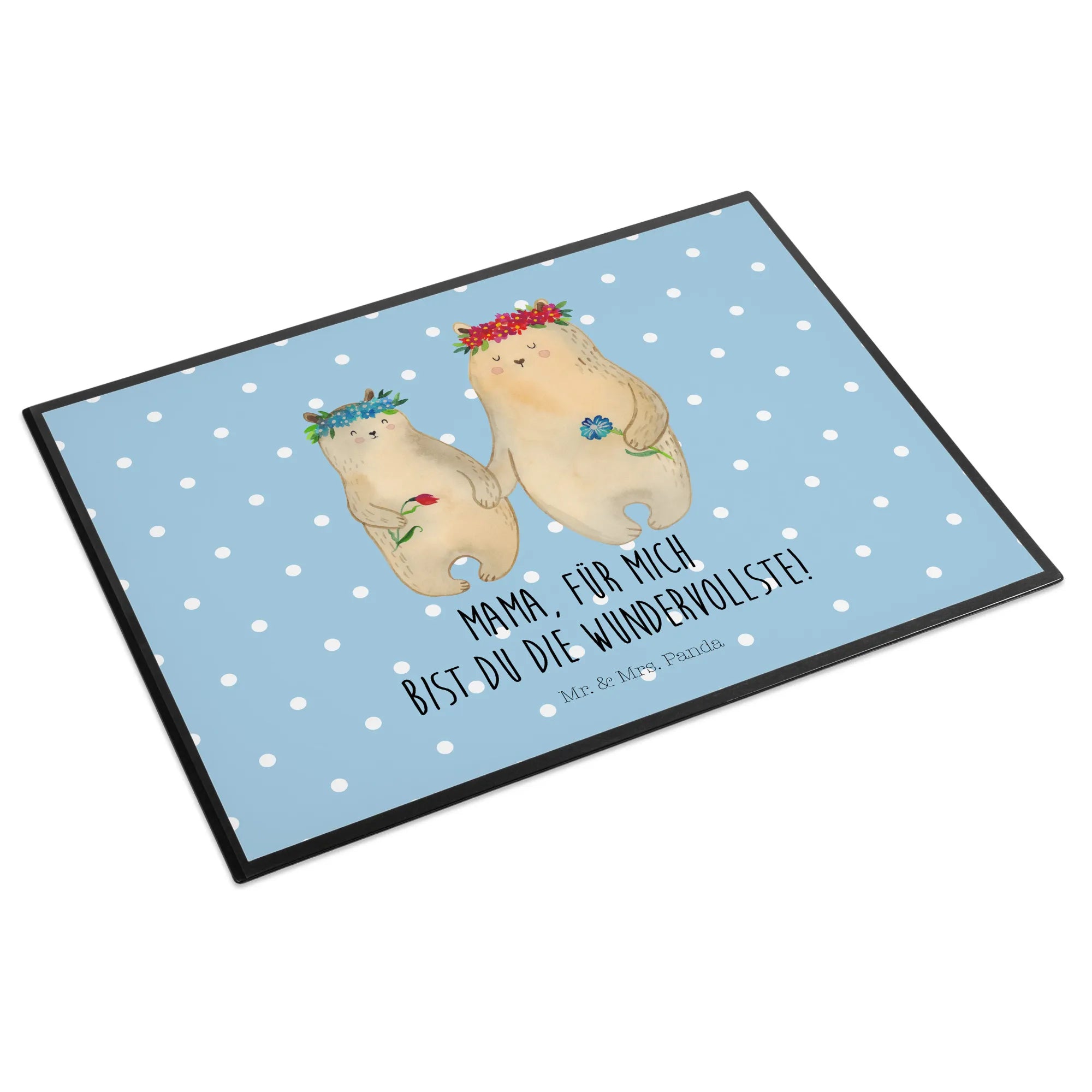 Die Schreibtischunterlage 'Bären mit Blumenkranz' von Mr. & Mrs. Panda ist das perfekte Geschenk für alle Mütter und Lieblingsmenschen. Sie verleiht jedem Arbeitsplatz einen liebevollen und fröhlichen Touch und sorgt nicht nur für Schutz, sondern auch für ein angenehmes Schreibgefühl.