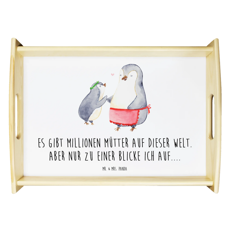 Serviertablett Pinguin mit Kind - mit Spruch - Weiß