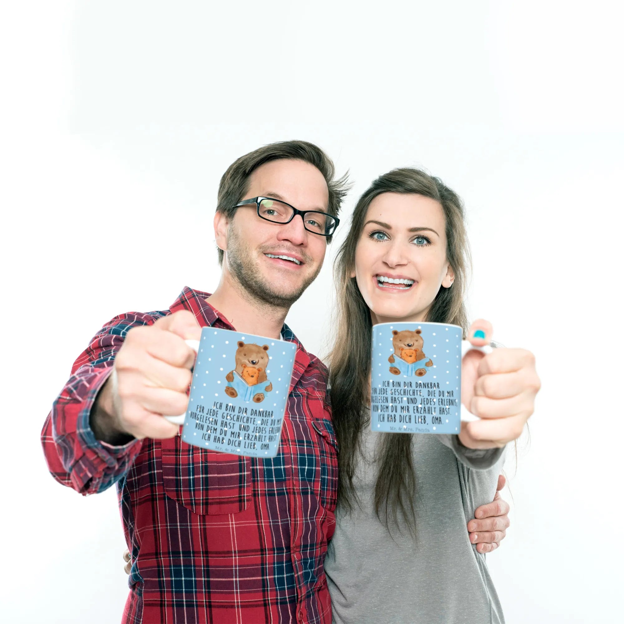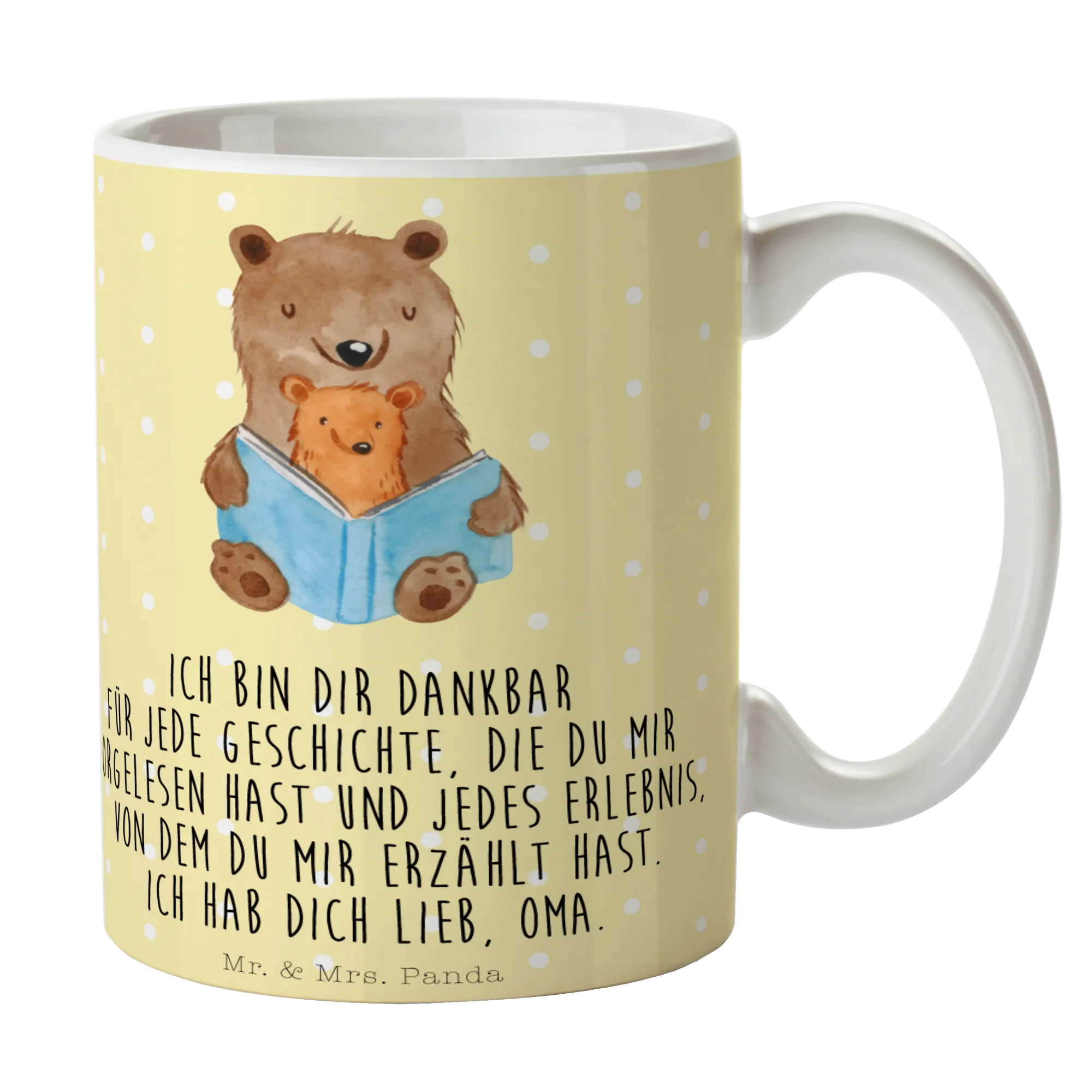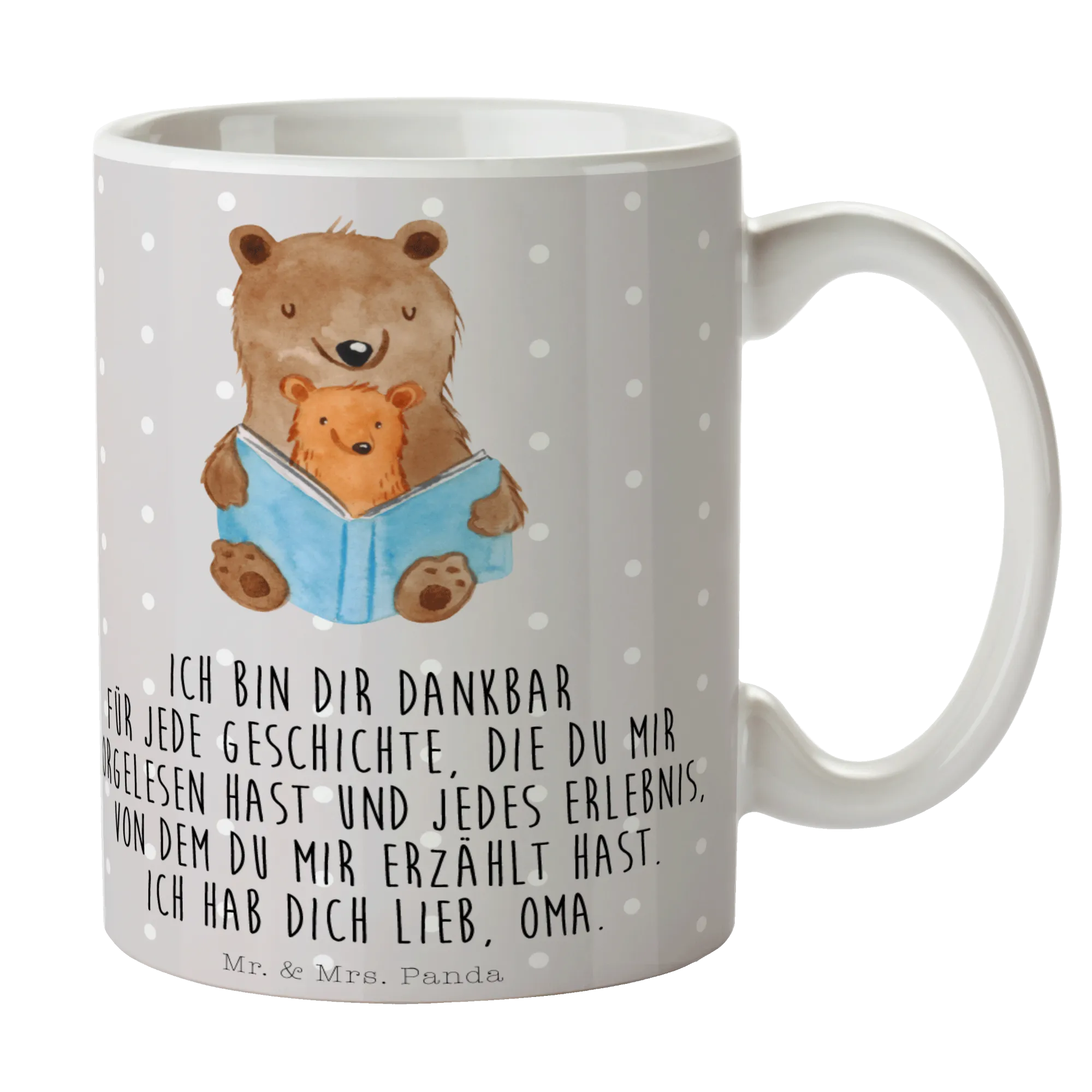 Die wunderschöne Tasse "Bären Buch" aus der Familien Kollektion von Mr. & Mrs. Panda ist das perfekte Geschenk für alle, die die herzlichen Geschichten und besonderen Momente mit ihrer Oma oder ihrem Opa schätzen. Diese Keramiktasse ist nicht nur ein tolles Alltagsobjekt, sondern auch ein liebevolles Erinnerungsstück, das beim Trinken von Kaffee oder Tee eine warme Botschaft übermittelt: "Ich bin dir dankbar für jede Geschichte, die du mir vorgelesen hast und jedes Erlebnis, von dem du mir erzählt hast. Ich hab dich lieb, Oma."