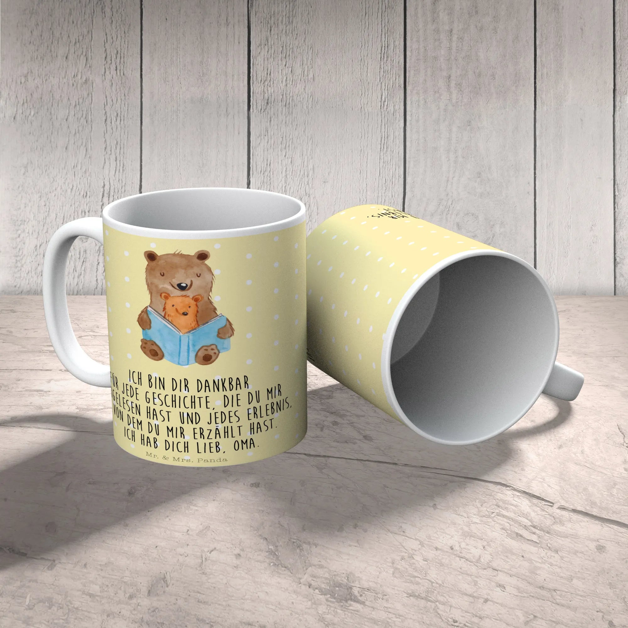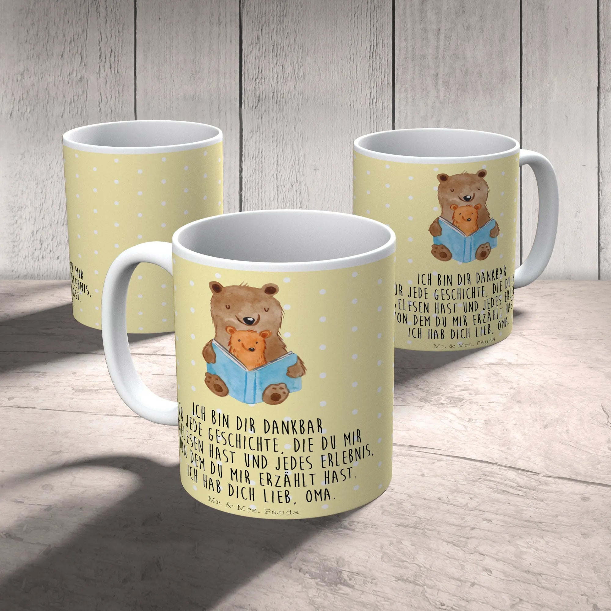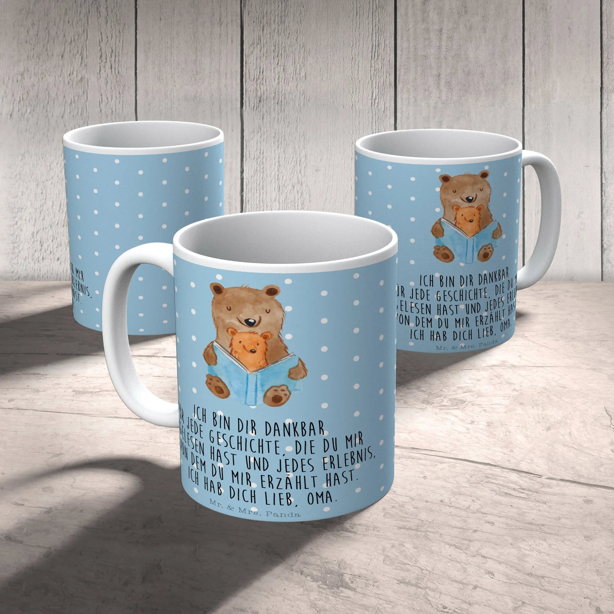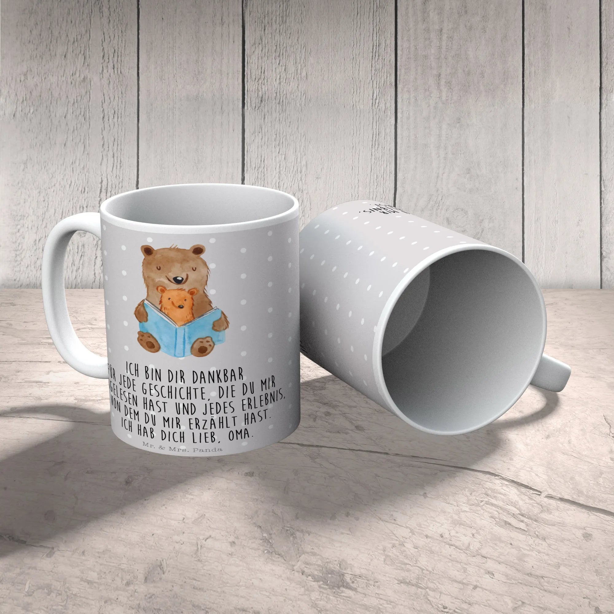 Sie ist nicht nur eine besondere Tasse für Oma, sondern auch ein wunderschönes Geschenk für den Muttertag, Vatertag oder einfach nur so, um jemandem zu zeigen, wie viel er dir bedeutet. Unsere Bären Buch Tasse ist außerdem mikrowellengeeignet und hält bis zu 2000 Waschgängen in der Spülmaschine stand.